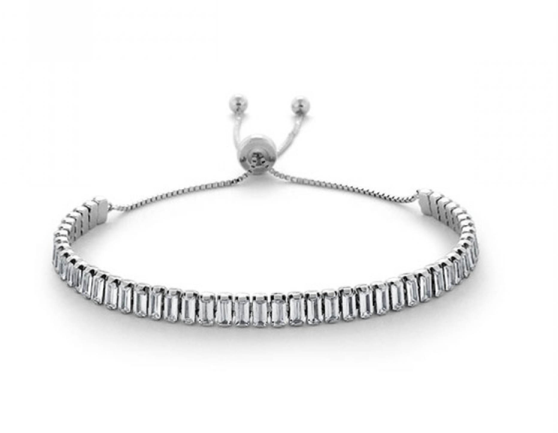 Silver bracelet made with sparkling white cubic zircons with a chain adjustable bracelet.