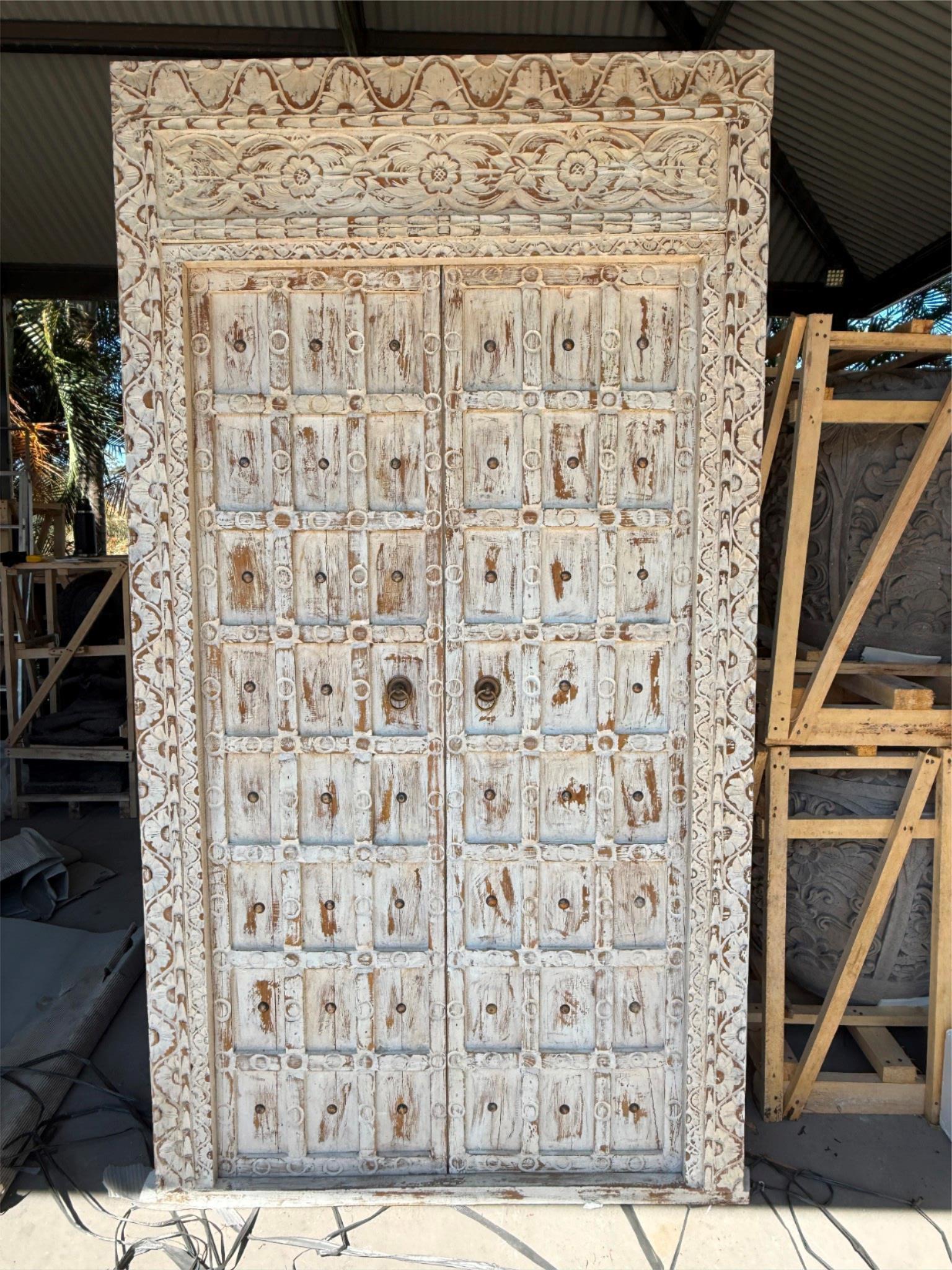 Authentic Balinese Door in Frame manufactured from Old/Recycled TEAK Timber and hand coloured.