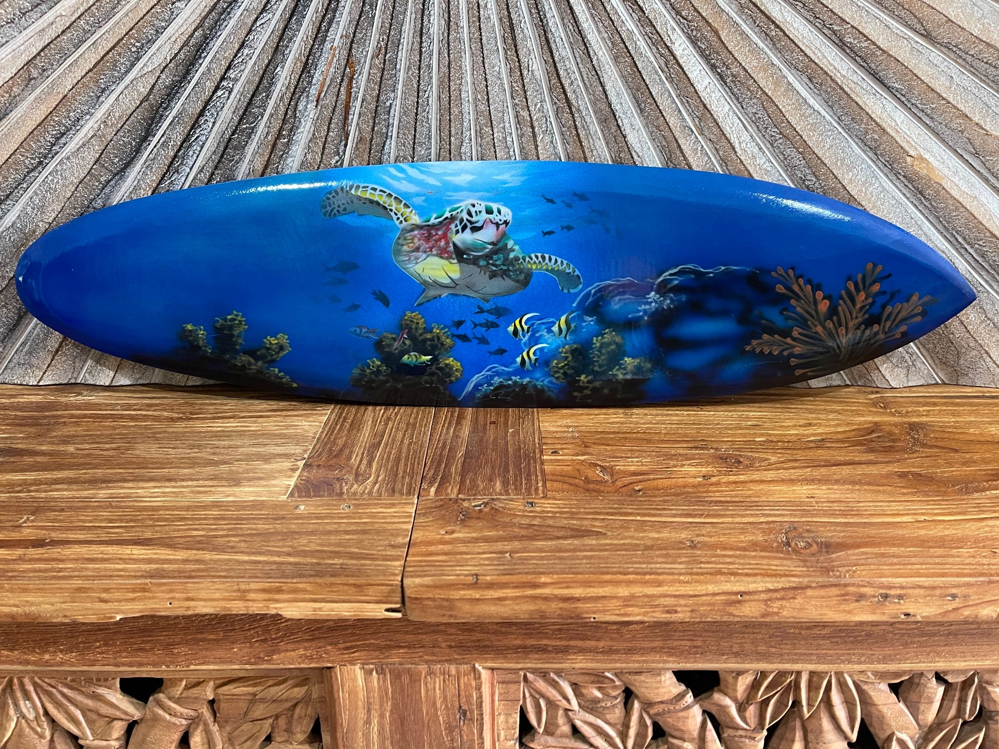 Bali Air Brushed Surfboard w/Turtle Wall Decor 80cm - Bali Surfboard Wall Art