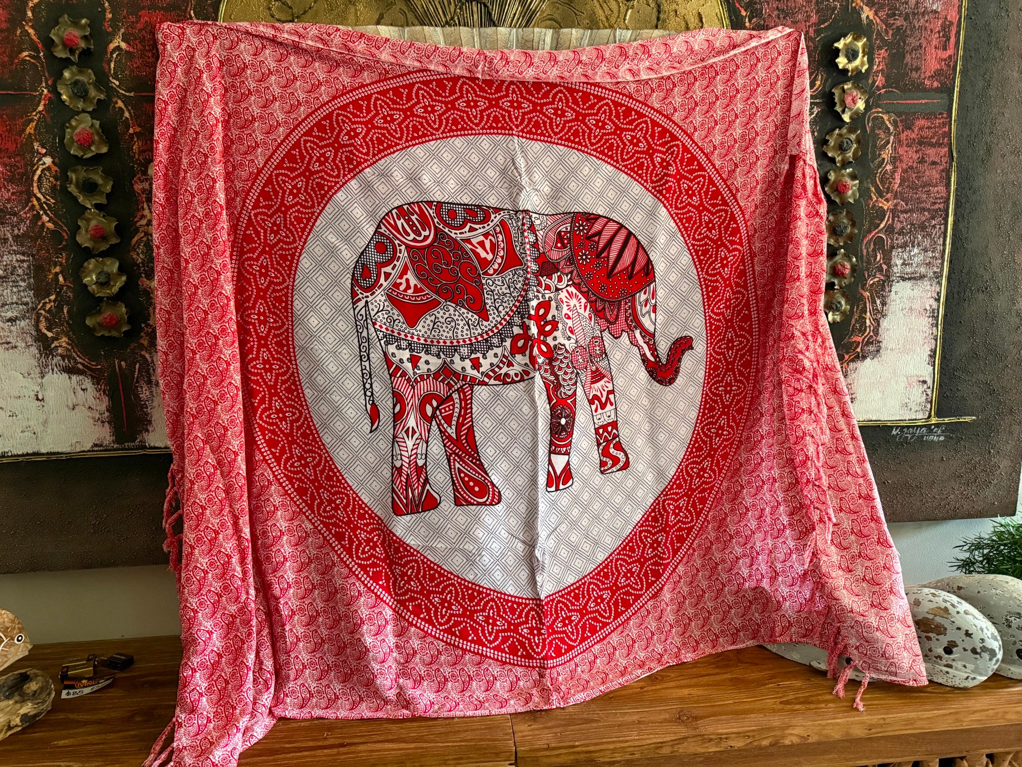Bali Beach Sarong - Elephant Print Sarong - Bikini Cover Up - Bali Sarong Red