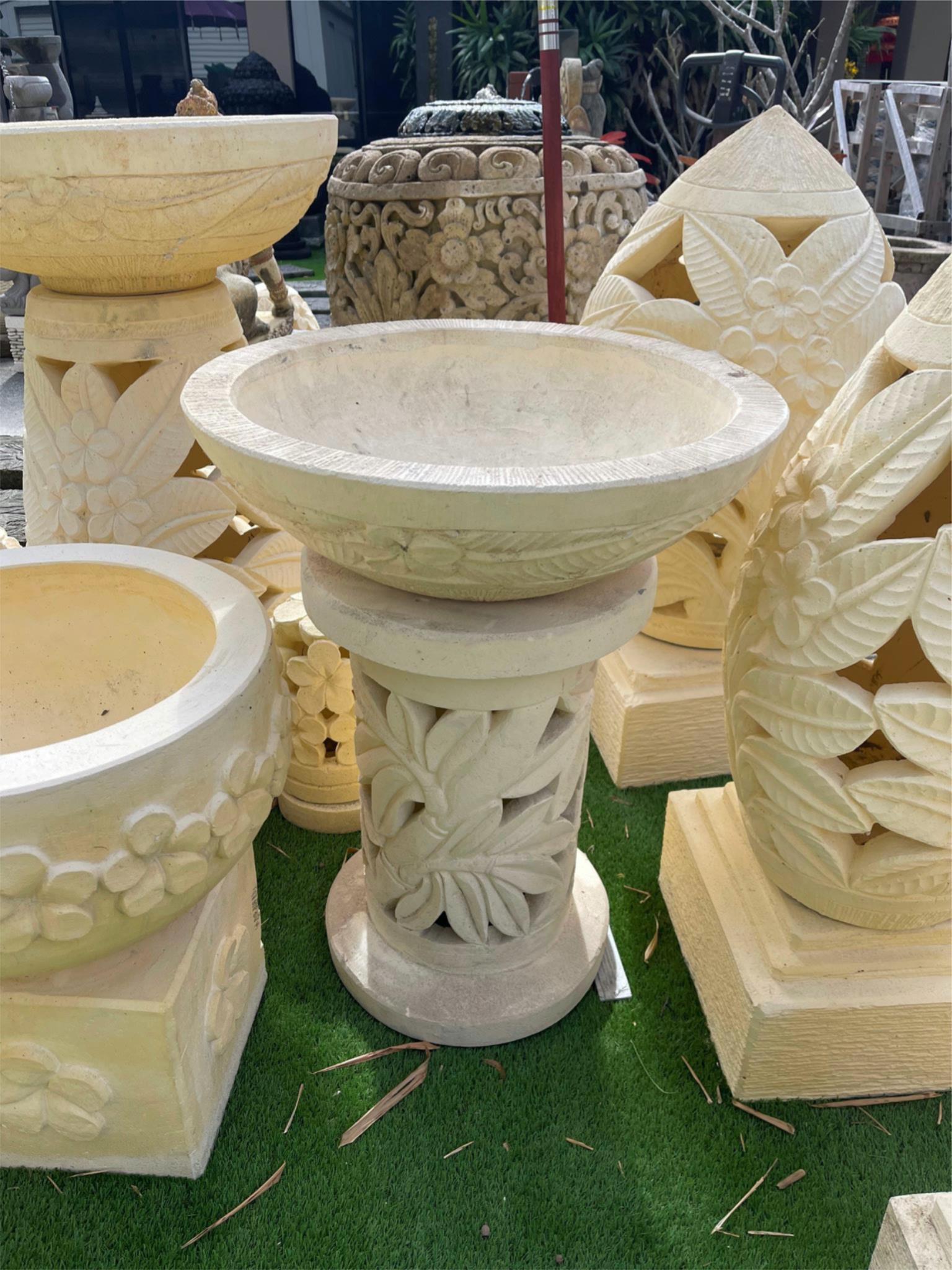 This beautifully hand crafted bird bath with bamboo design on the stand and frangipani / leaf design on the bowl will look fabulous in your garden and your local birds will be very thankful!!
