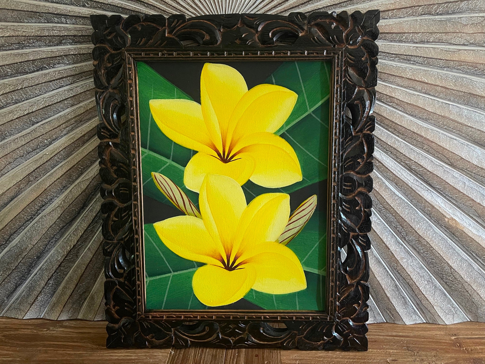 This beautifully hand painted on canvas and framed in stunning Balinese Carved framework is just beautiful as can be seen in the photos provided.
