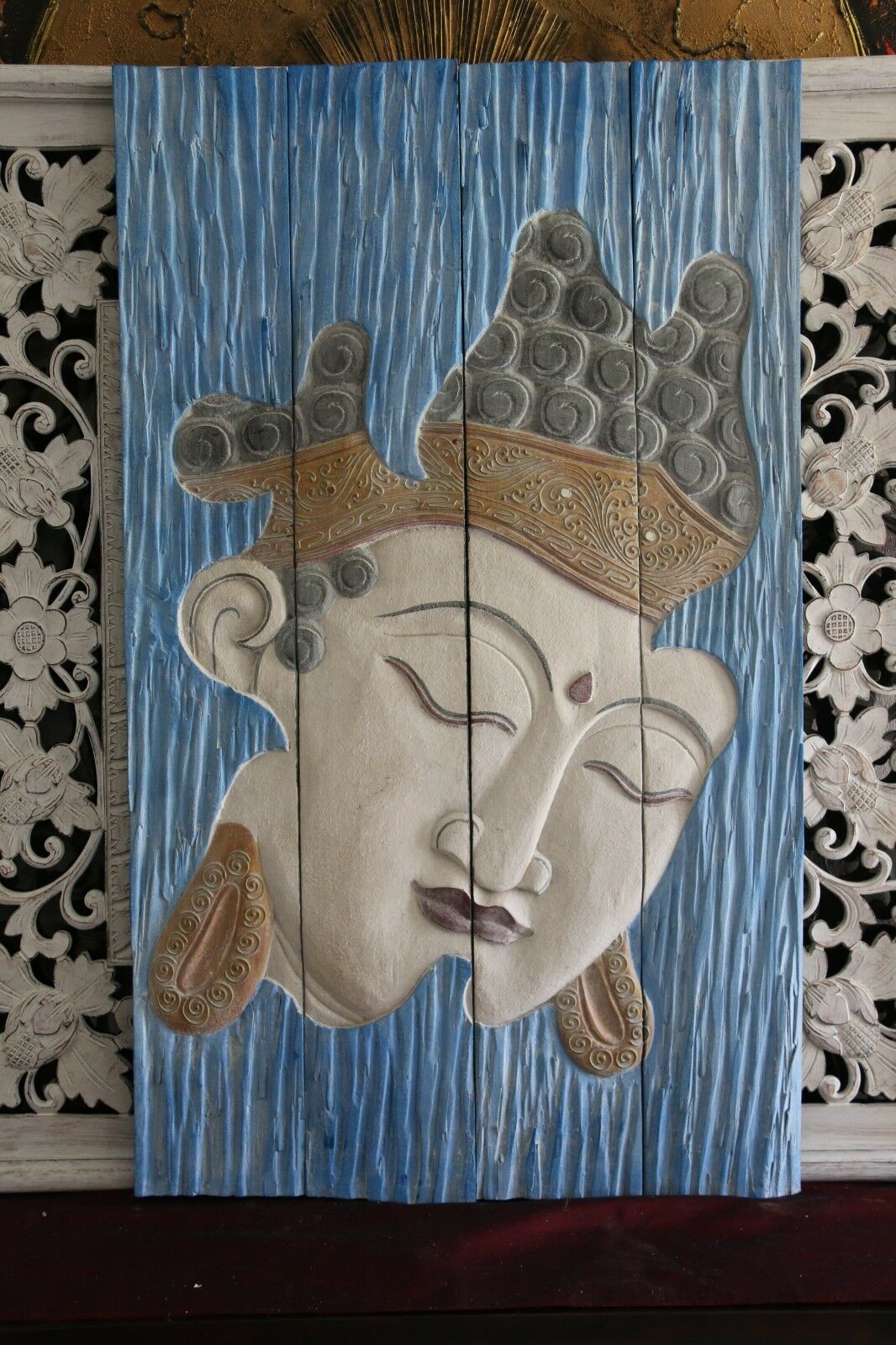 This beautifully hand carved and crafted wooden Buddha Face Panel with add authentic Balinese charm to your home.