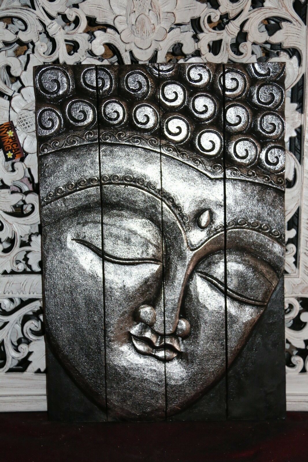 This beautifully hand carved and crafted wooden Buddha Face Panel with add authentic Balinese charm to your home. Measurements are approx: 40cm wide x 60cm highPLEASE NOTE:  Measurments may vary slightly as these panels are all handmade.Panel is 4 hinged pieces so can hang on wall by simply attaching mounting...