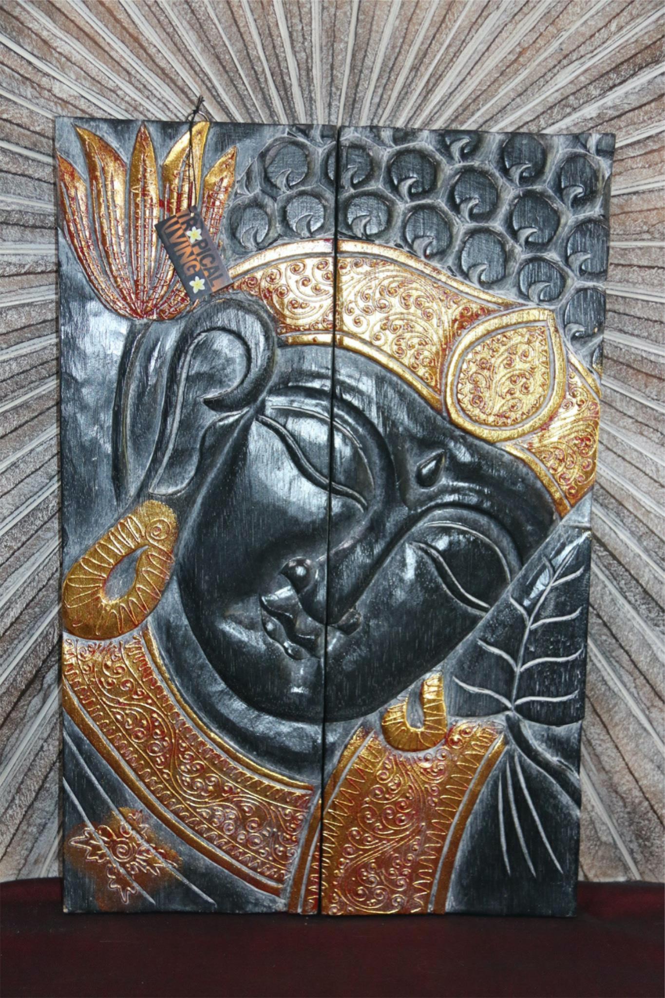 Balinese Hand Carved Wood Hinged Buddha Wall Panel - Bali Buddha Wall Panel 60cm