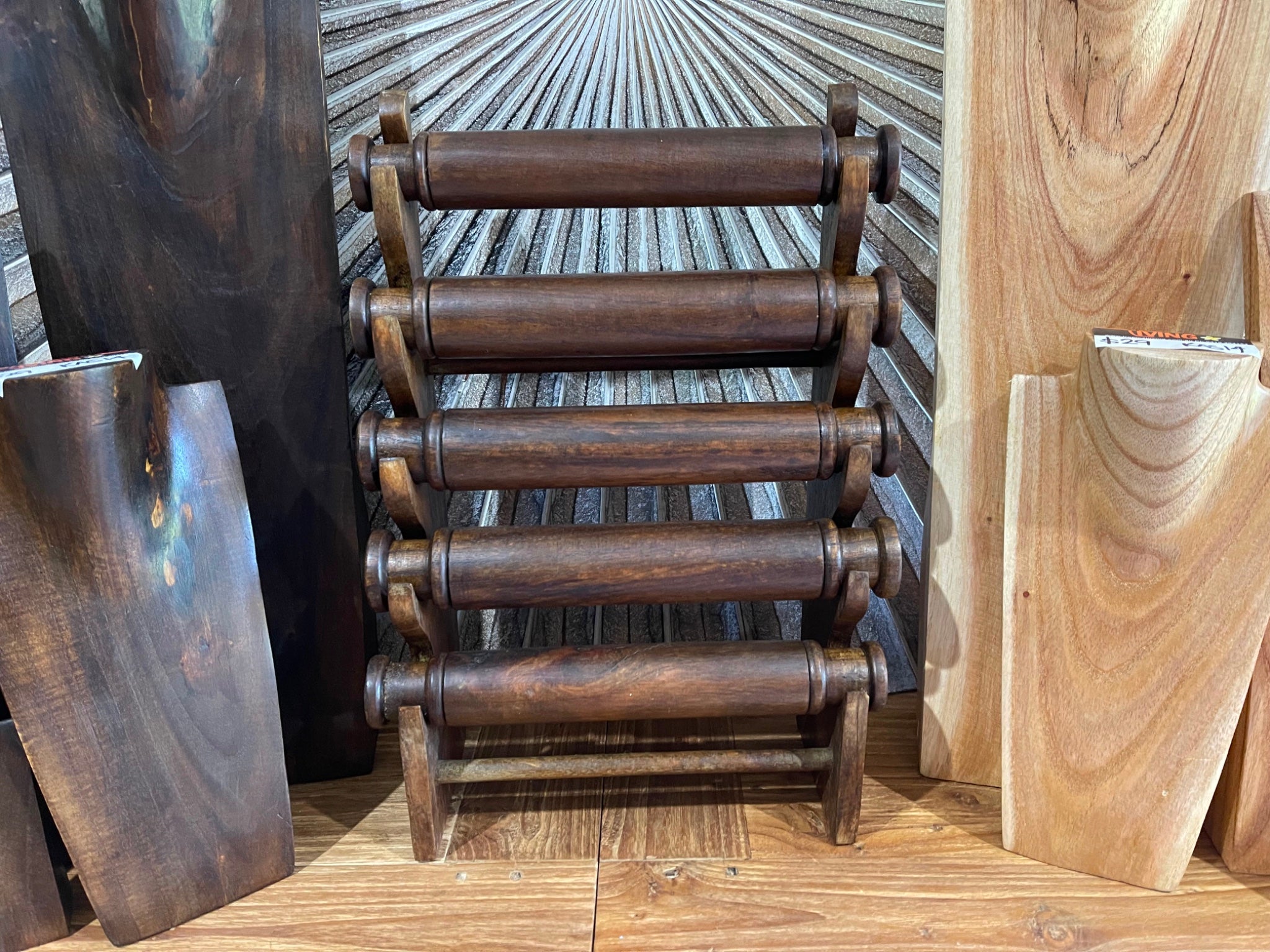 Great piece for holding lots of bracelets... Hand crafted from natural timber, this 5 bar bracelet holder is a great piece for personal or business use.