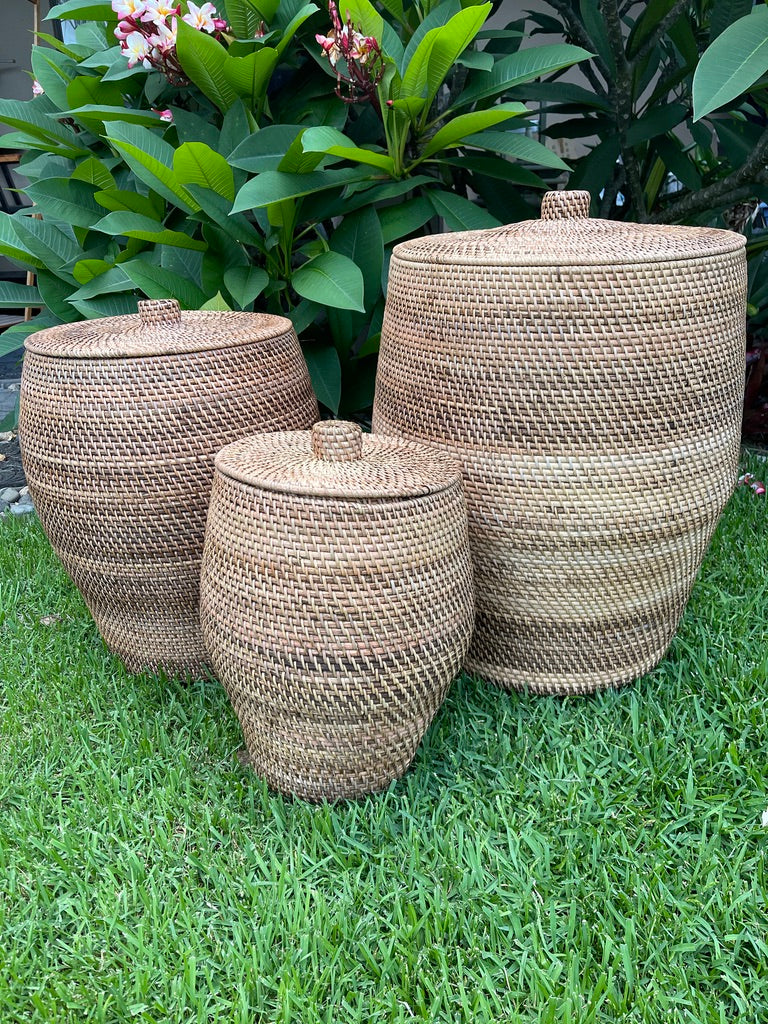 These beautifully hand crafted / woven rattan laundry baskets with lid are a perfect solution for your dirty clothes storage and will add Tropical Charm to your home.