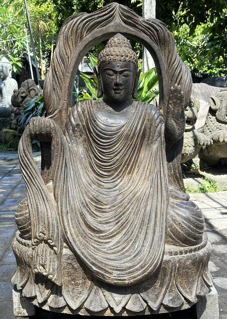 This Mudra or hand positioning of this statue can be called a pure symbol of protecting oneself and experiencing fearlessness, it can also be considered as a protection, peace and dispelling of fear. It is also known as form of spreading peace, love, friendship, and fearlessness.