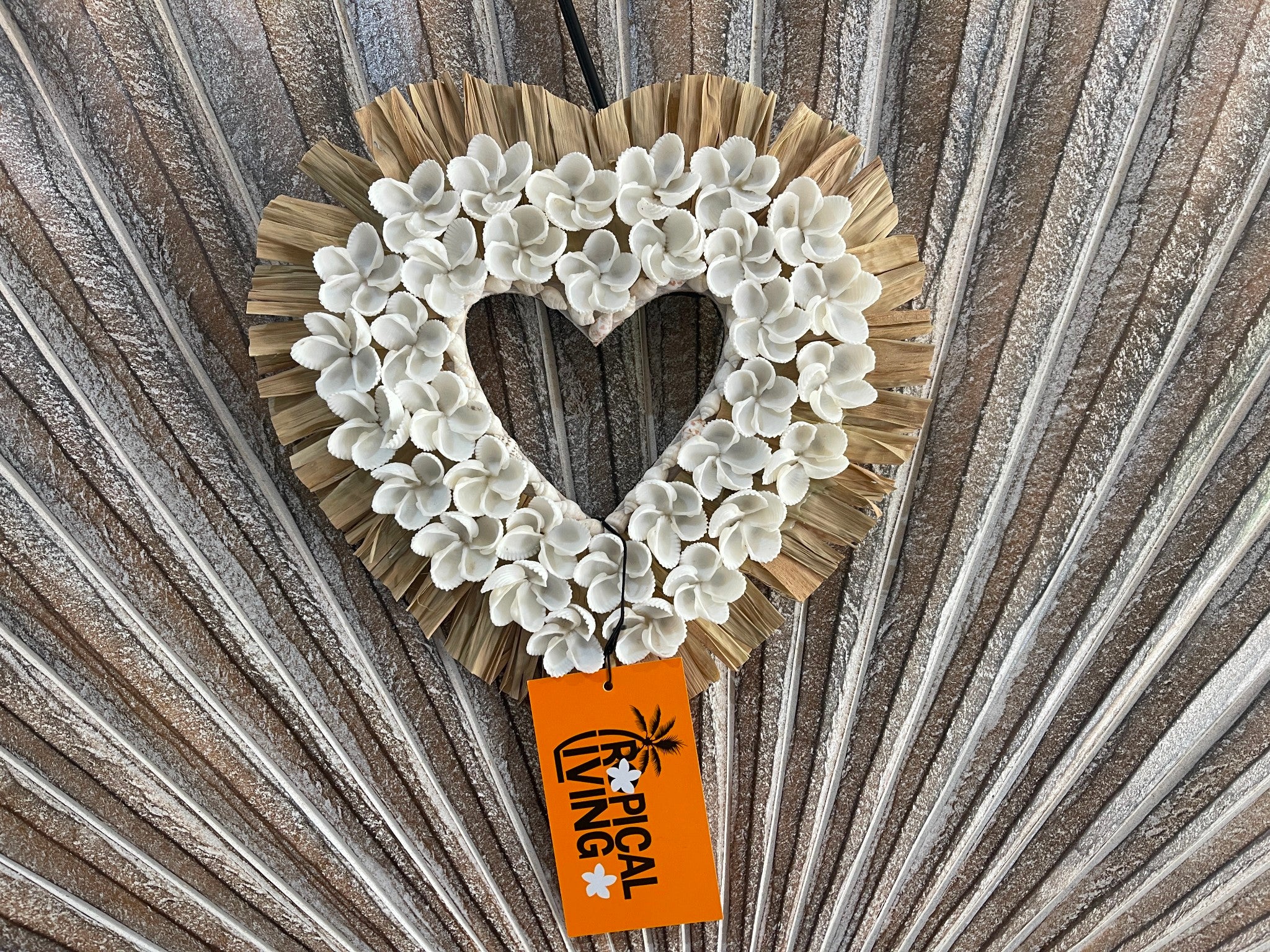 This beautifully hand crafted shell with seagrass trim heart wall art will look amazing with your Coastal, Nautical or BOHO styling.