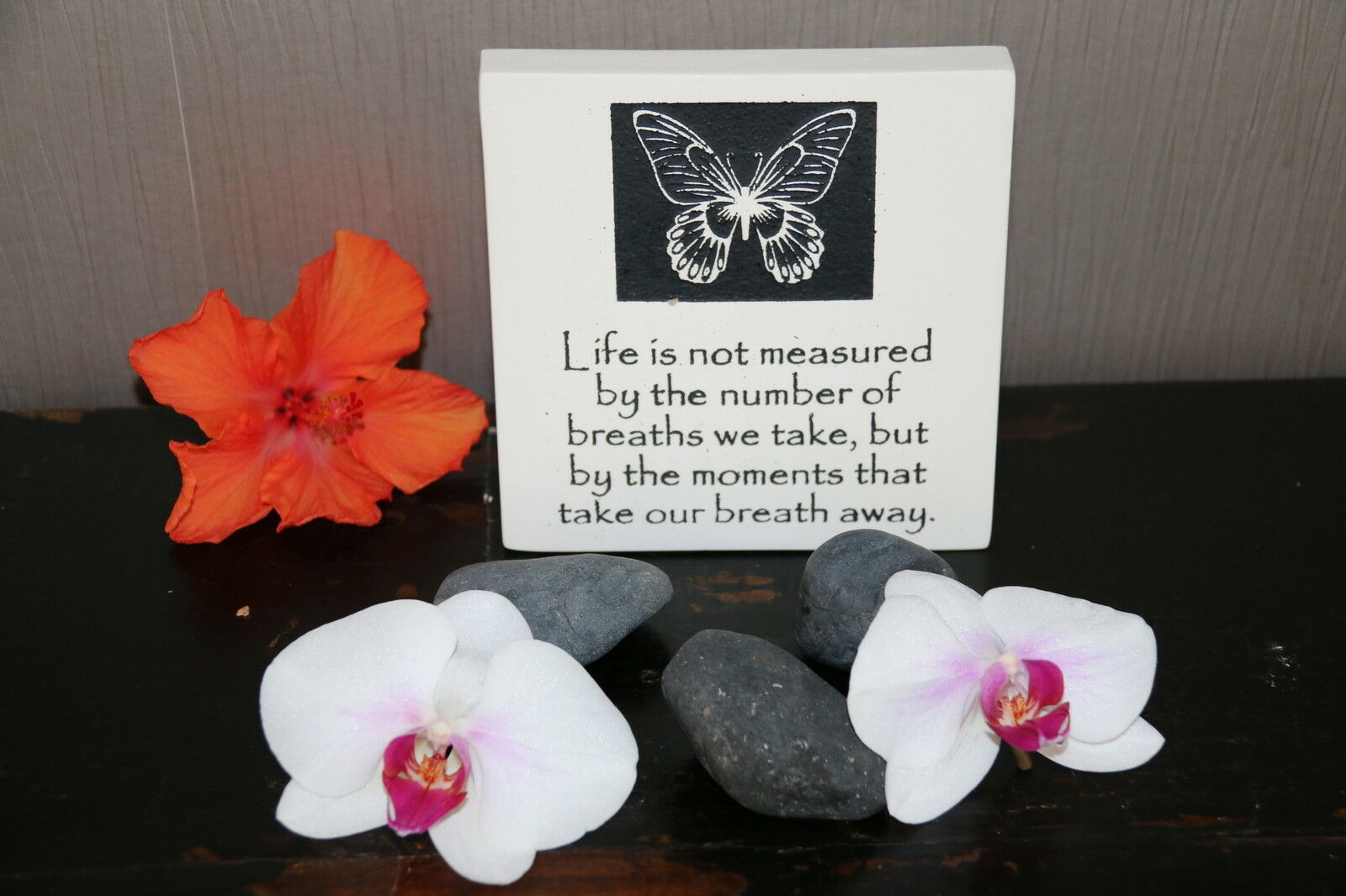 Brand New Balinese Free Standing BUTTERFLY LIFE Affirmation Plaque