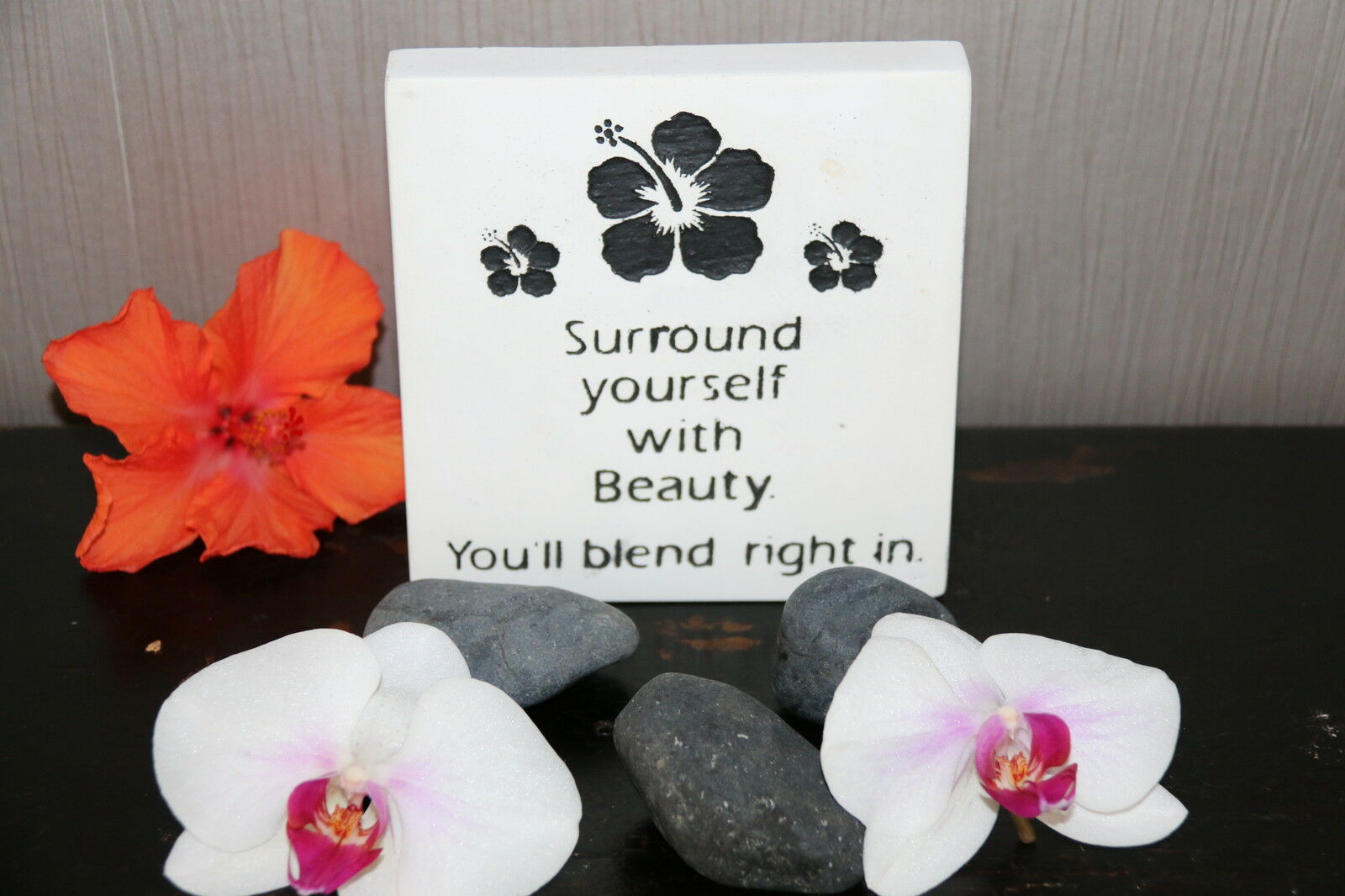 Brand New Balinese Free Standing HIBISCUS BEAUTY Affirmation Plaque