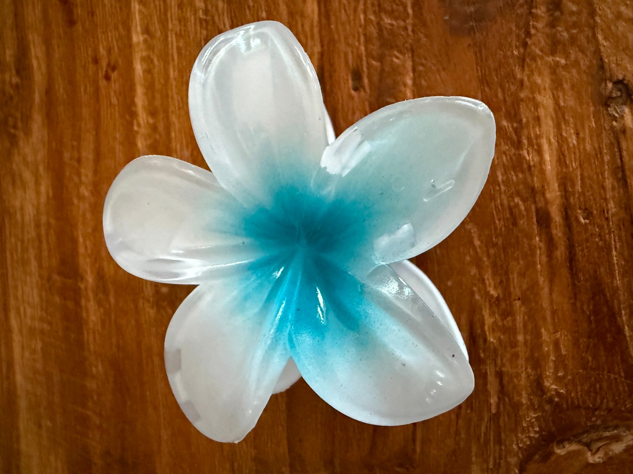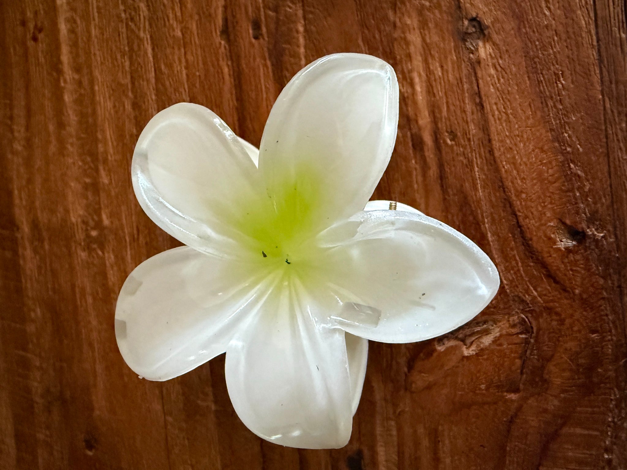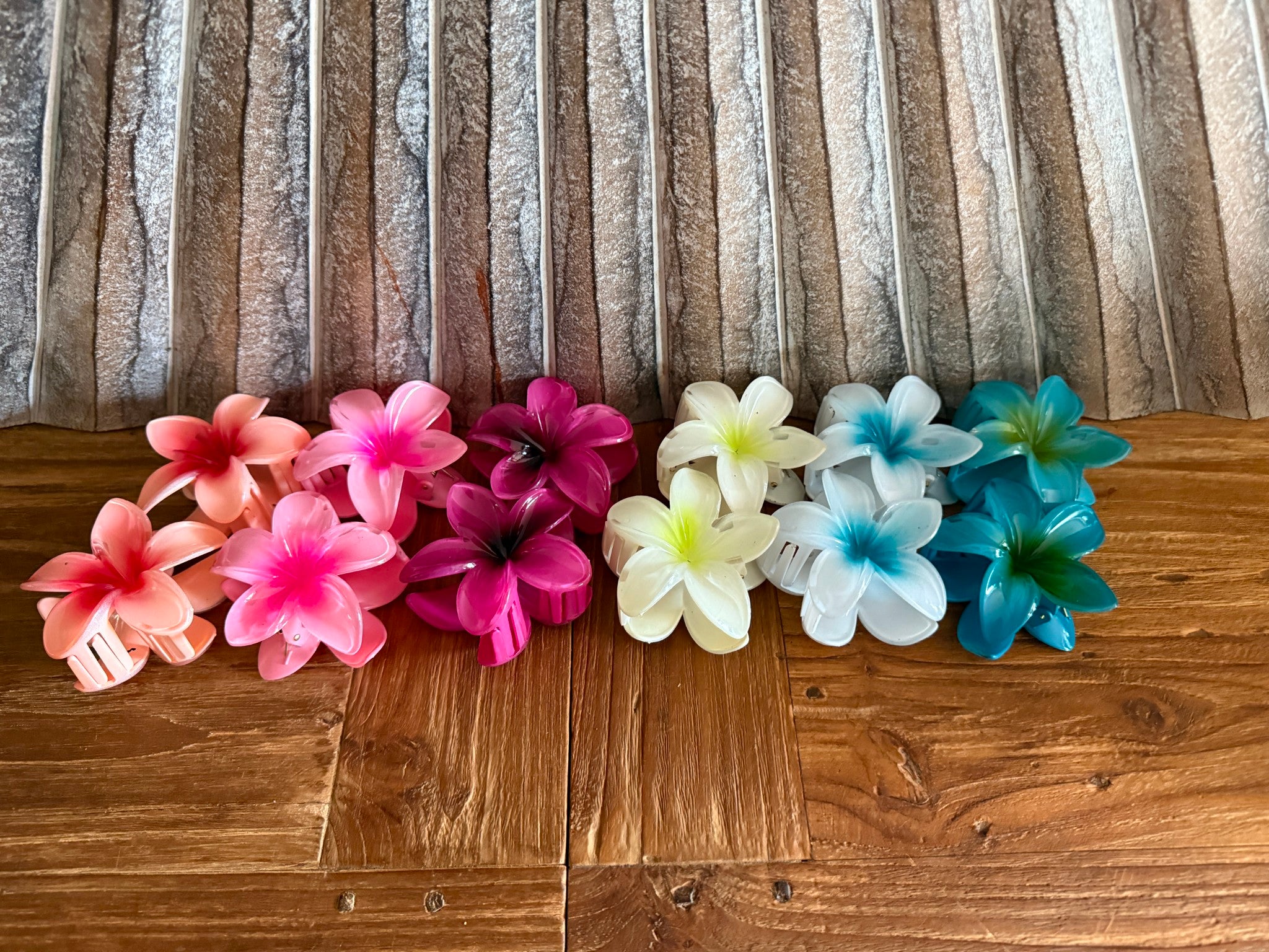 These beautiful frangipani plastic claw hair clips are so pretty as you can see in the photo