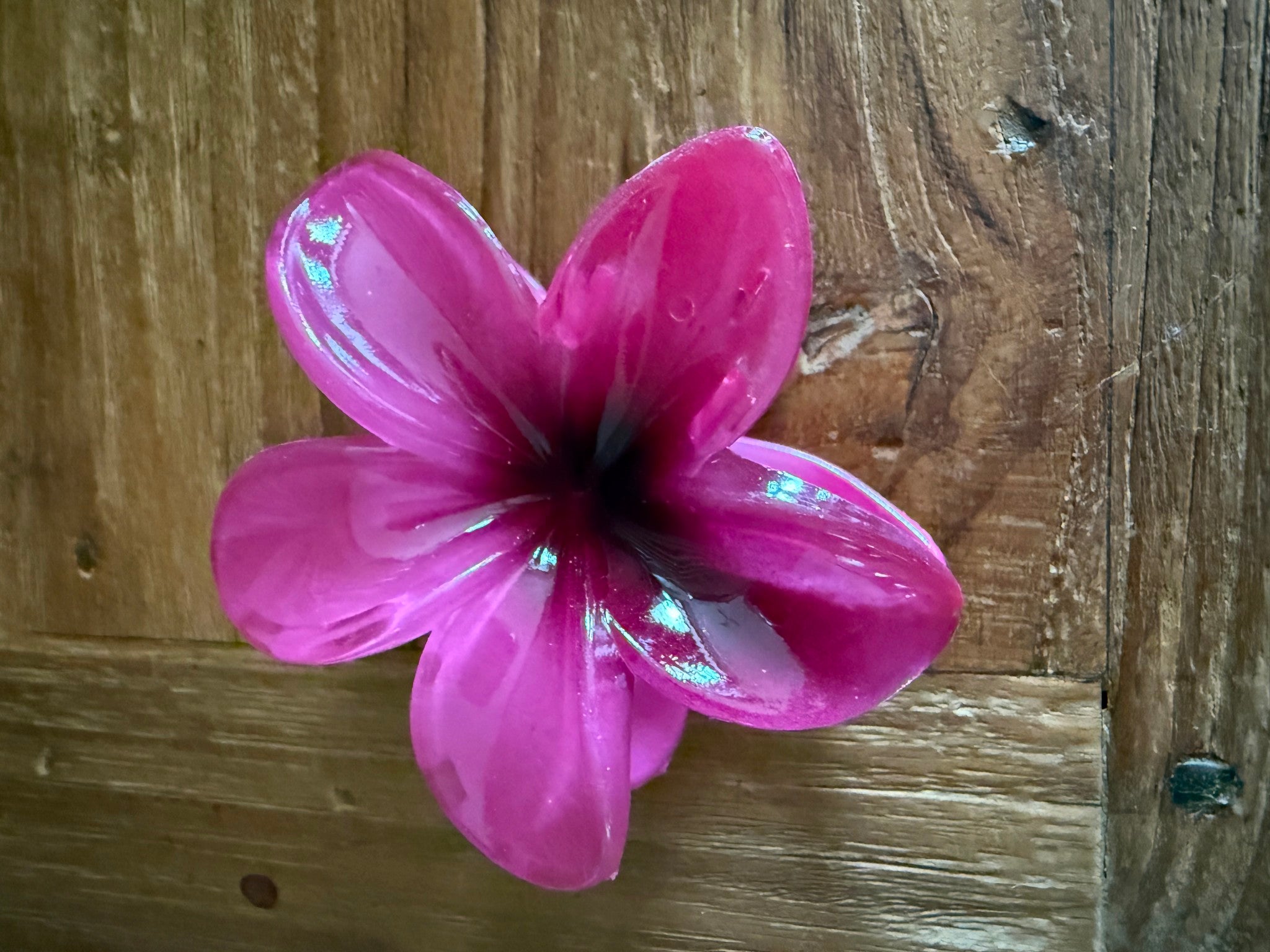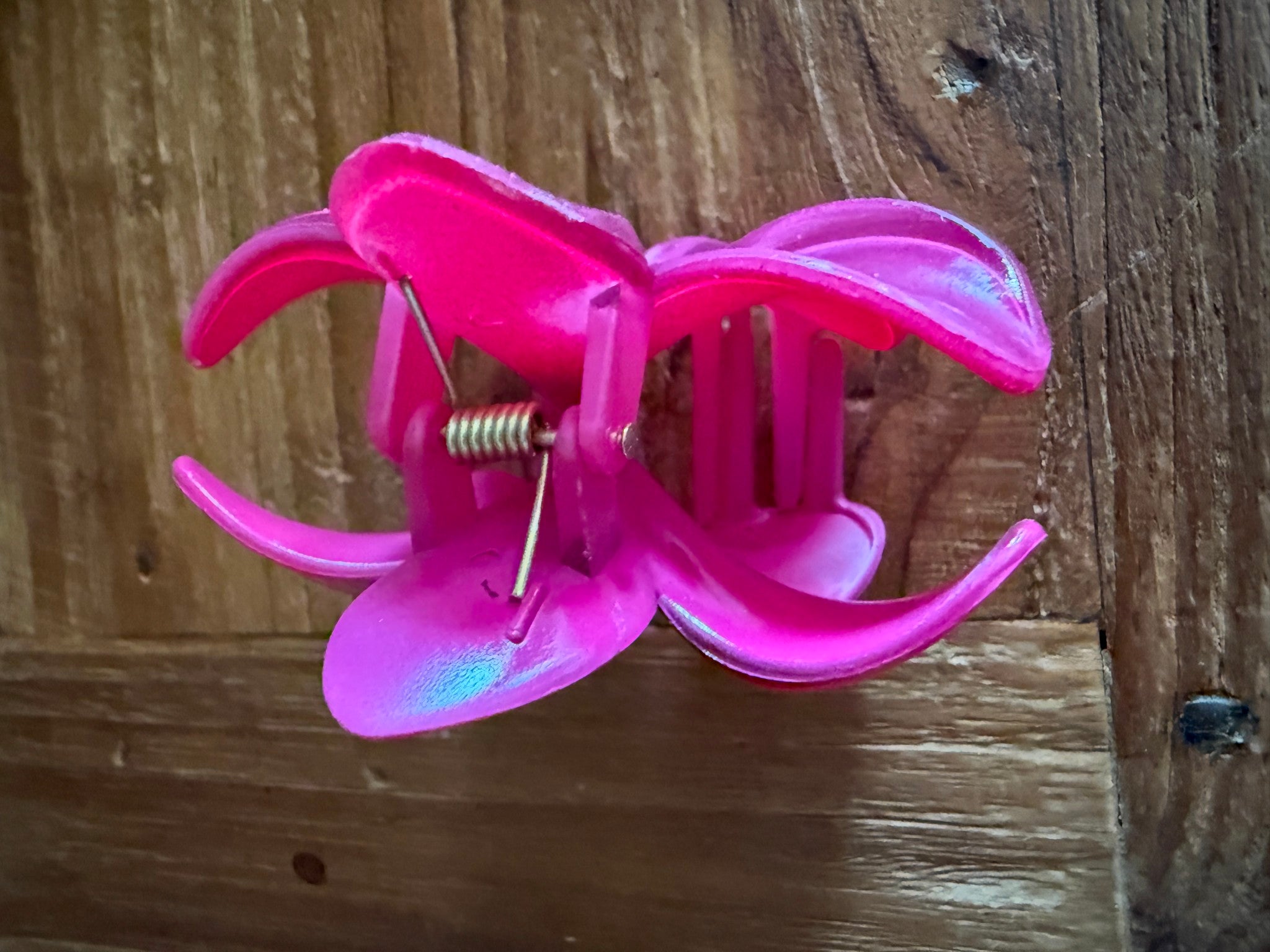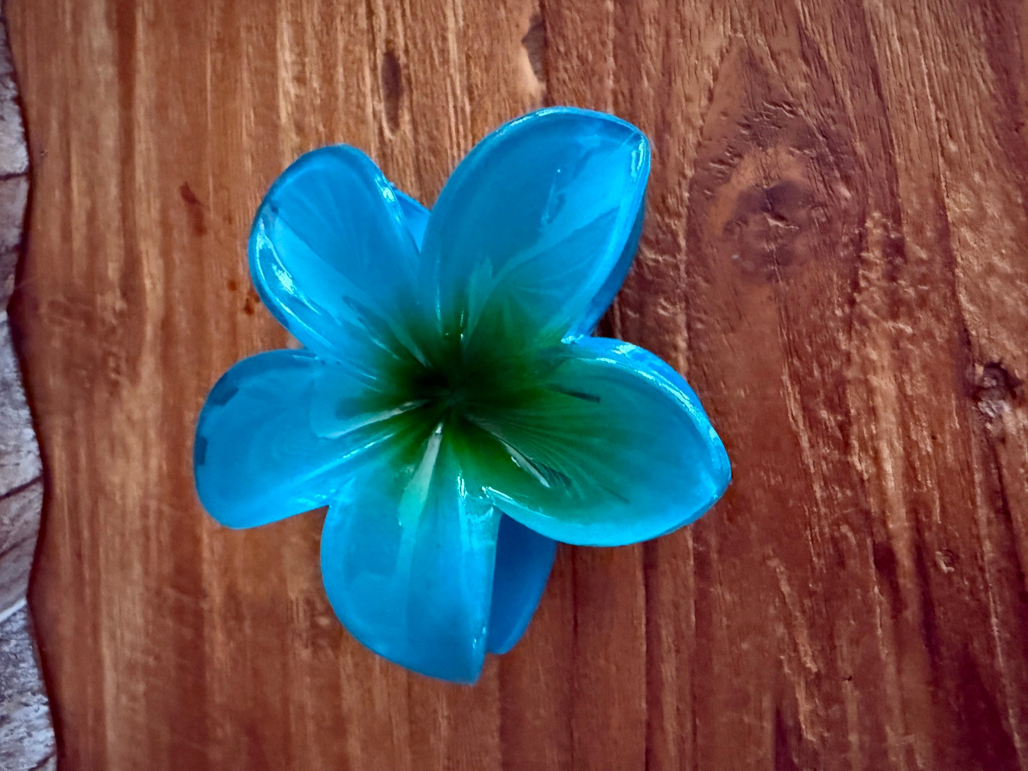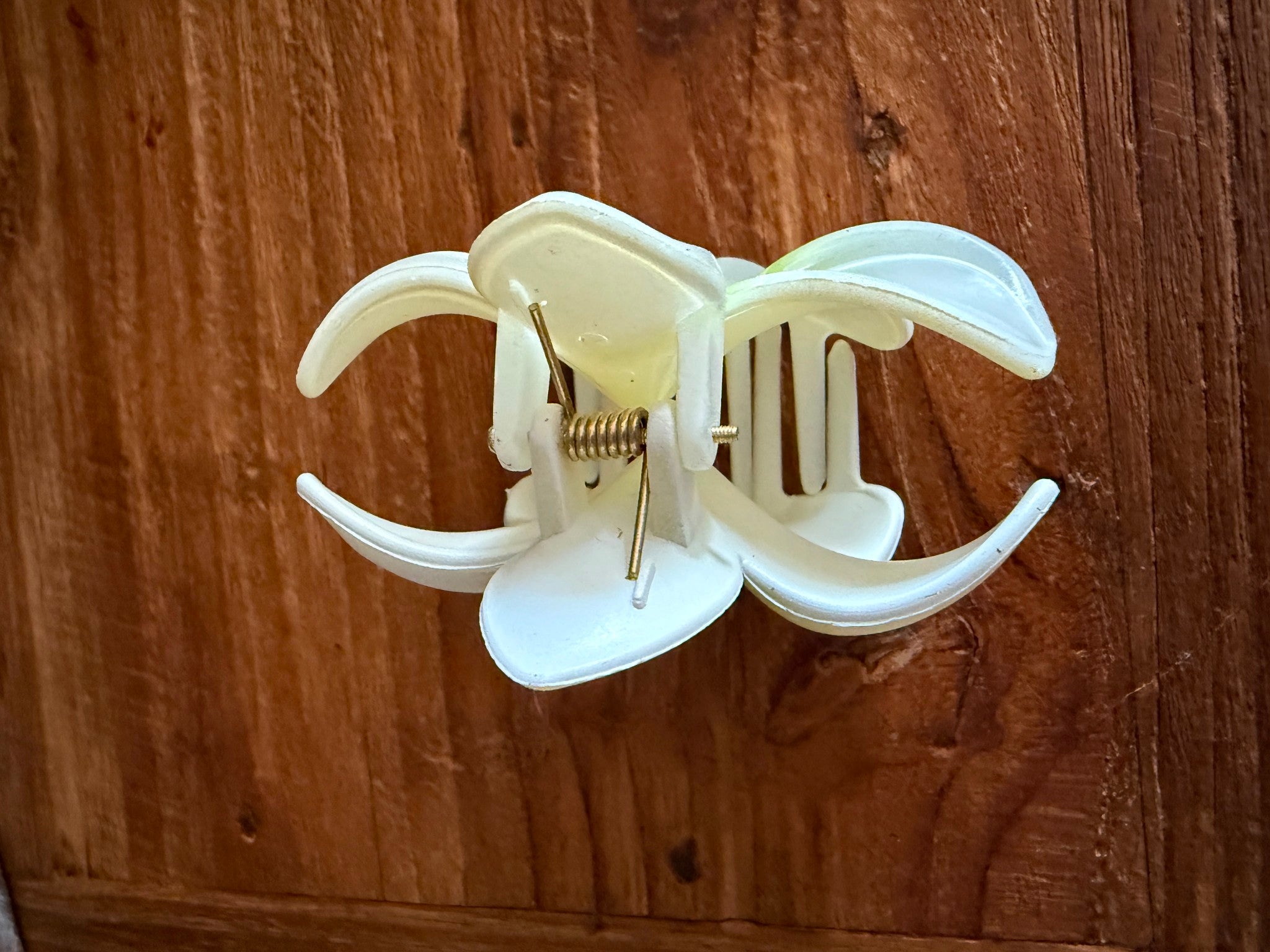 These beautiful frangipani plastic claw hair clips are so pretty as you can see in the photo