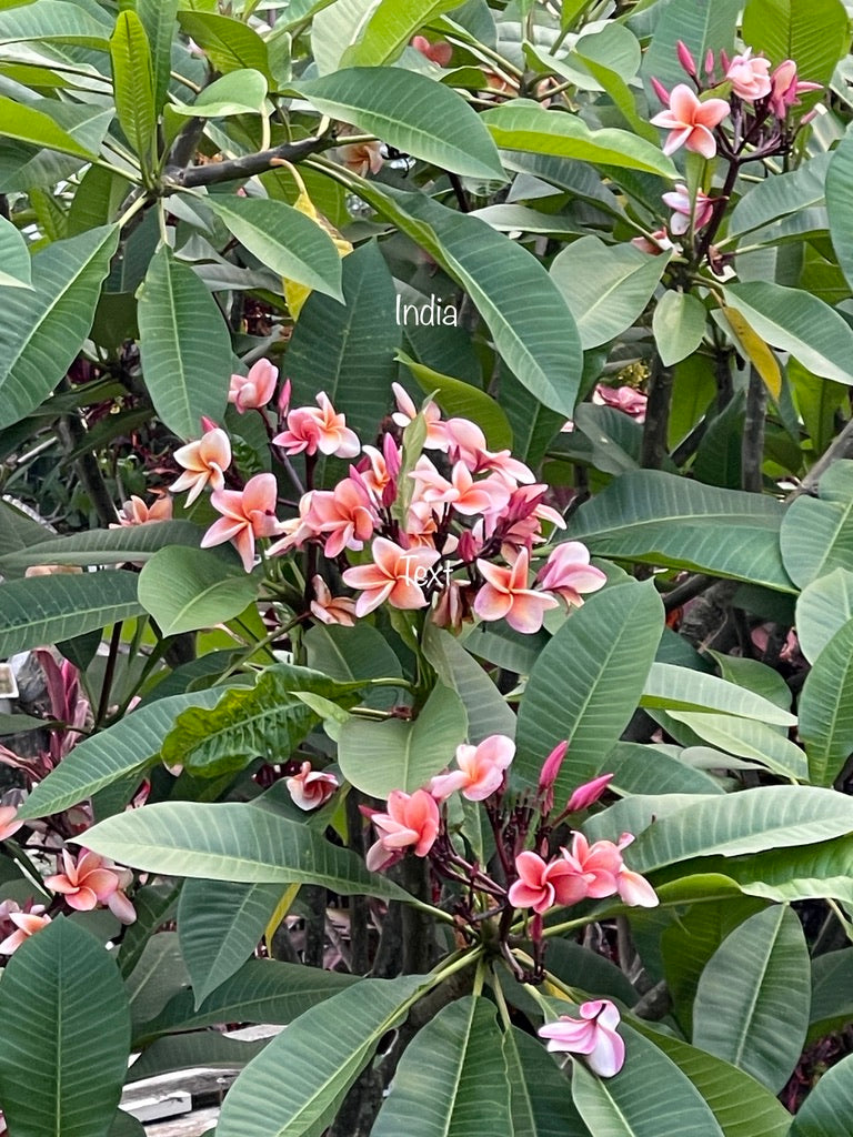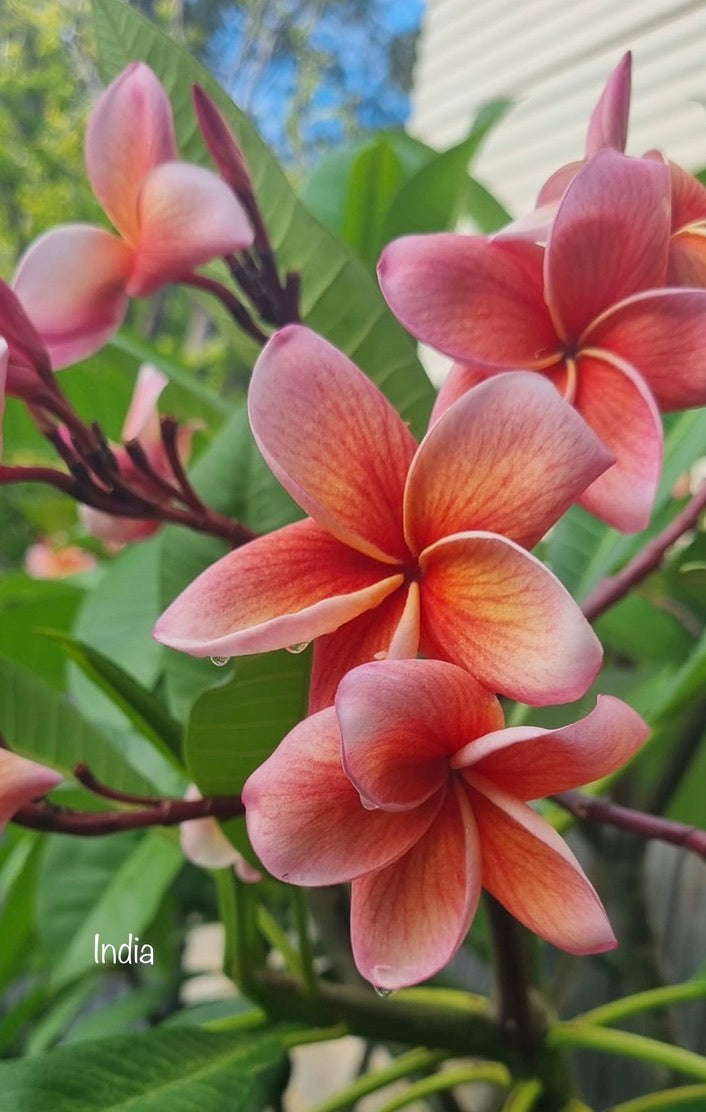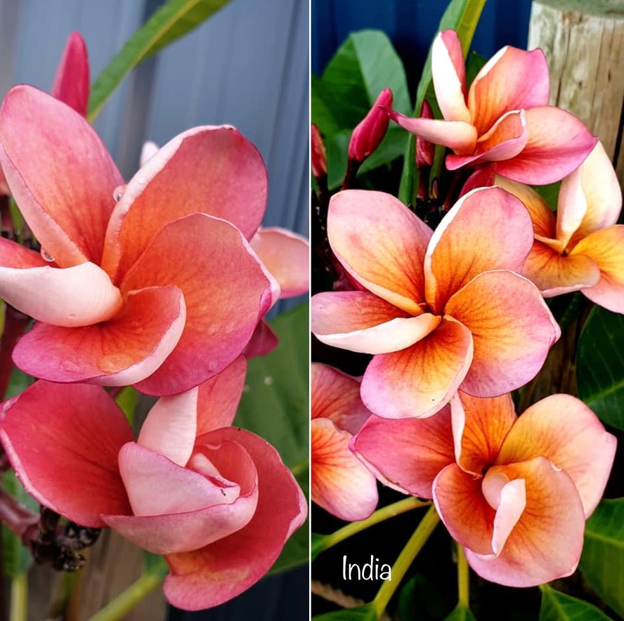 India an amazing Frangipani / Plumeria with spectacular orange tone blooms.