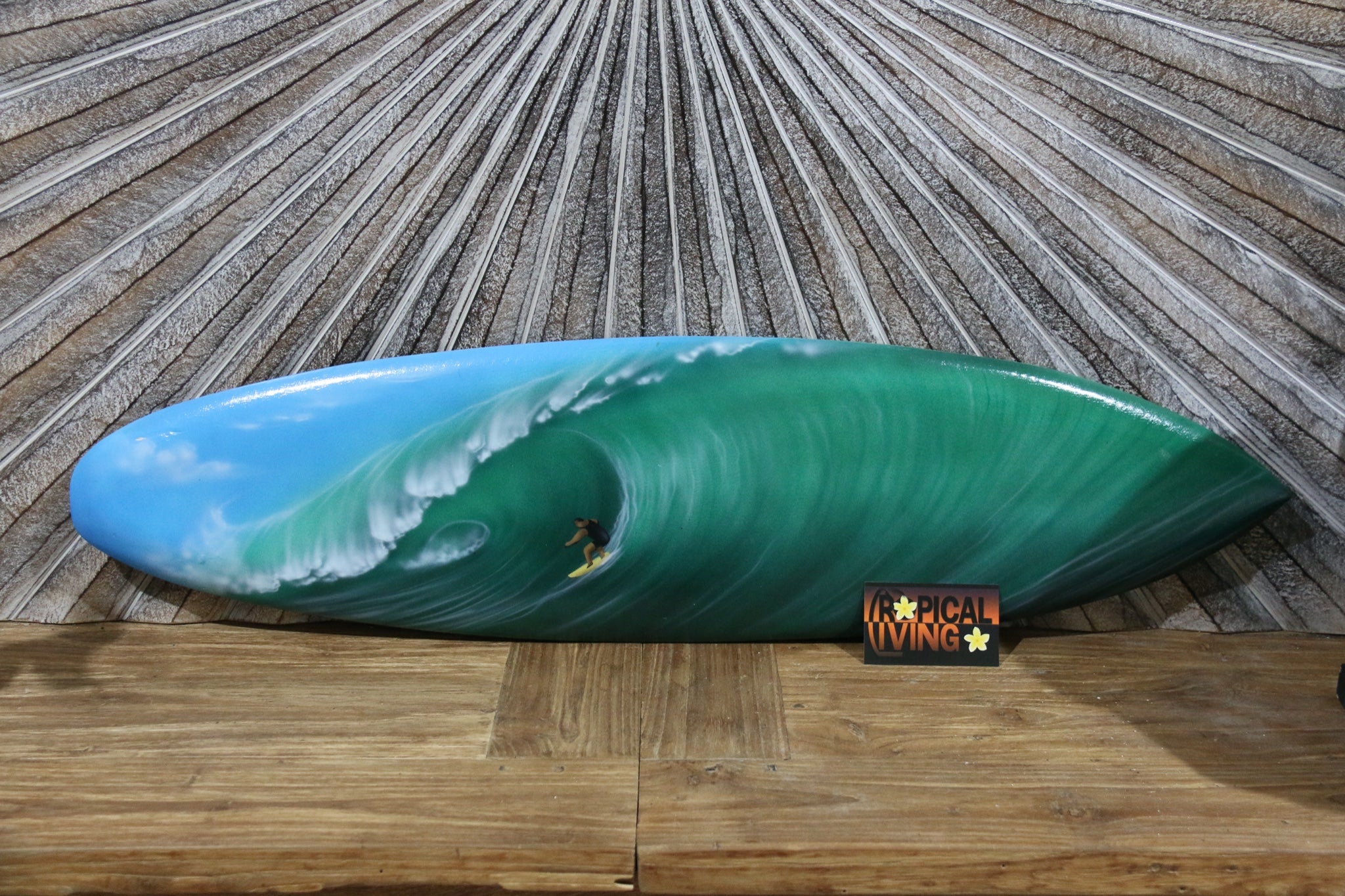 This mural style surfboard wall decor is hand crafted from timber and has a glossy air brushed finish.