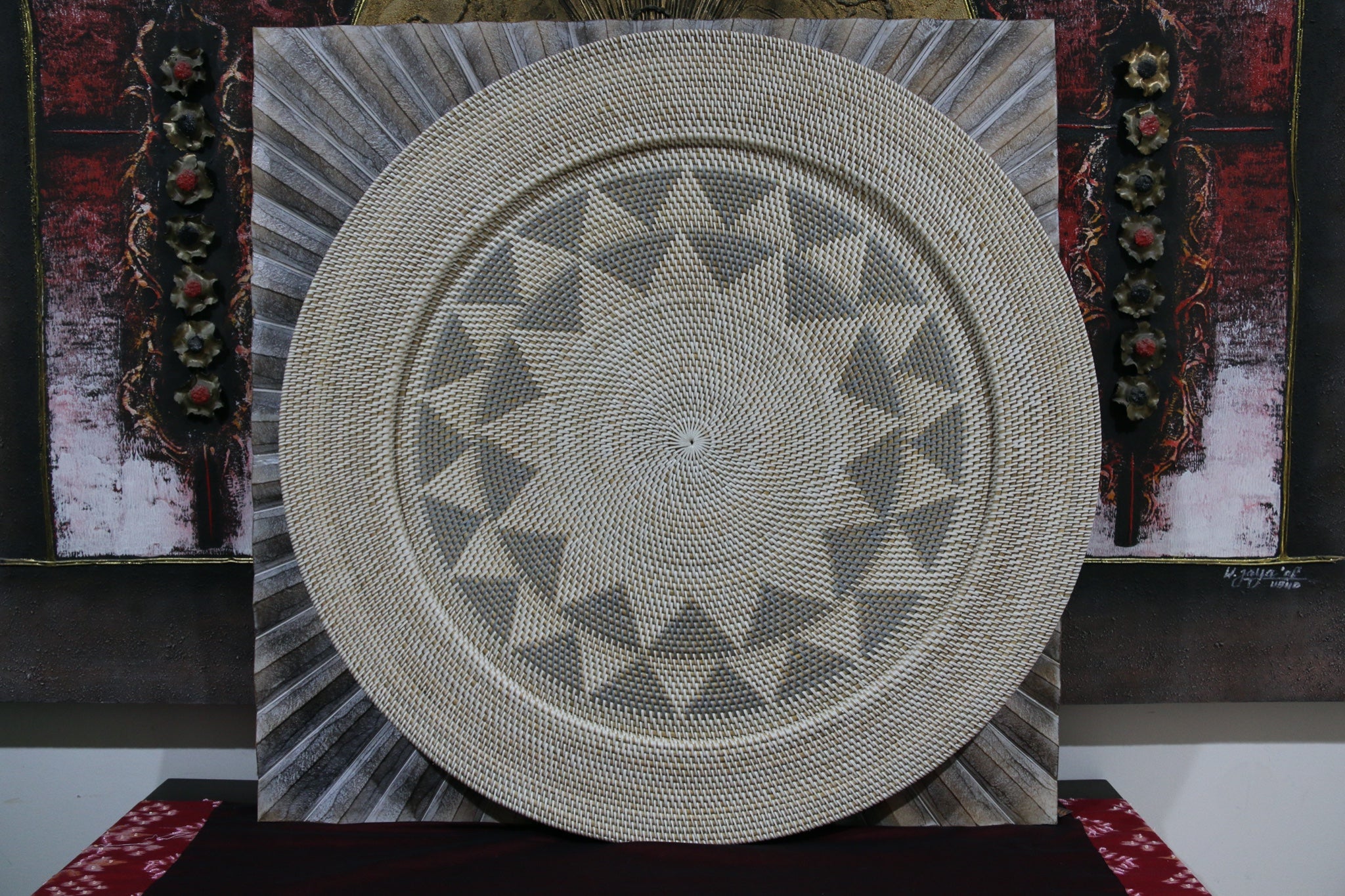 NEW Bali Woven Rattan Platter with Motif - Balinese Woven Rattan Wall Art 100cm
