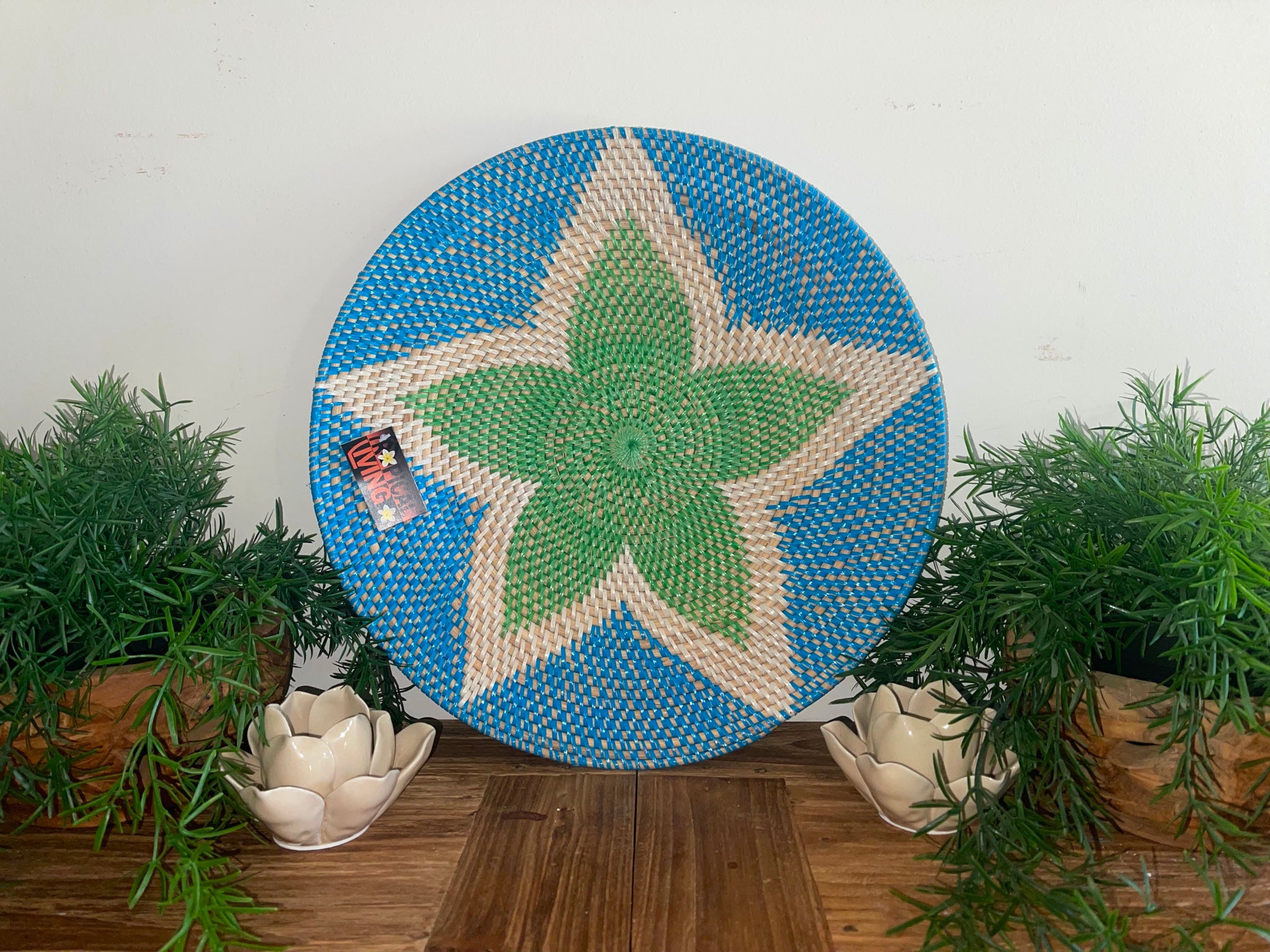 This beautifully hand crafted rattan platter can be used for entertaining or it can also be used as home decor wall art as you can see in the photos.
