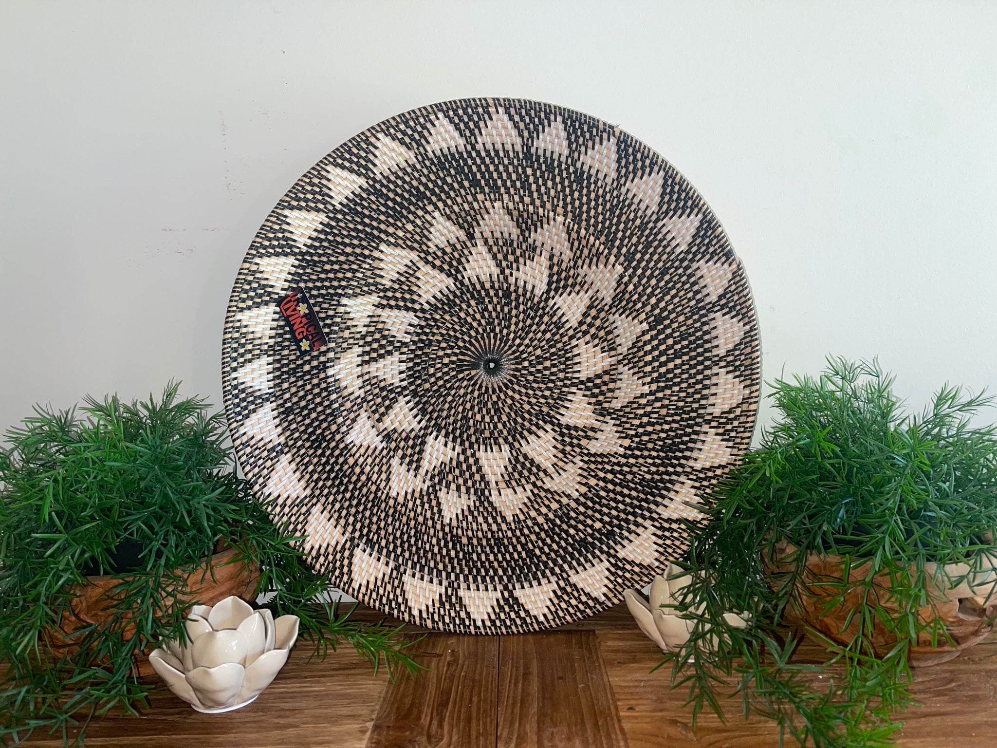 This beautifully hand crafted rattan platter can be used for entertaining or it can also be used as home decor wall art as you can see in the photos.