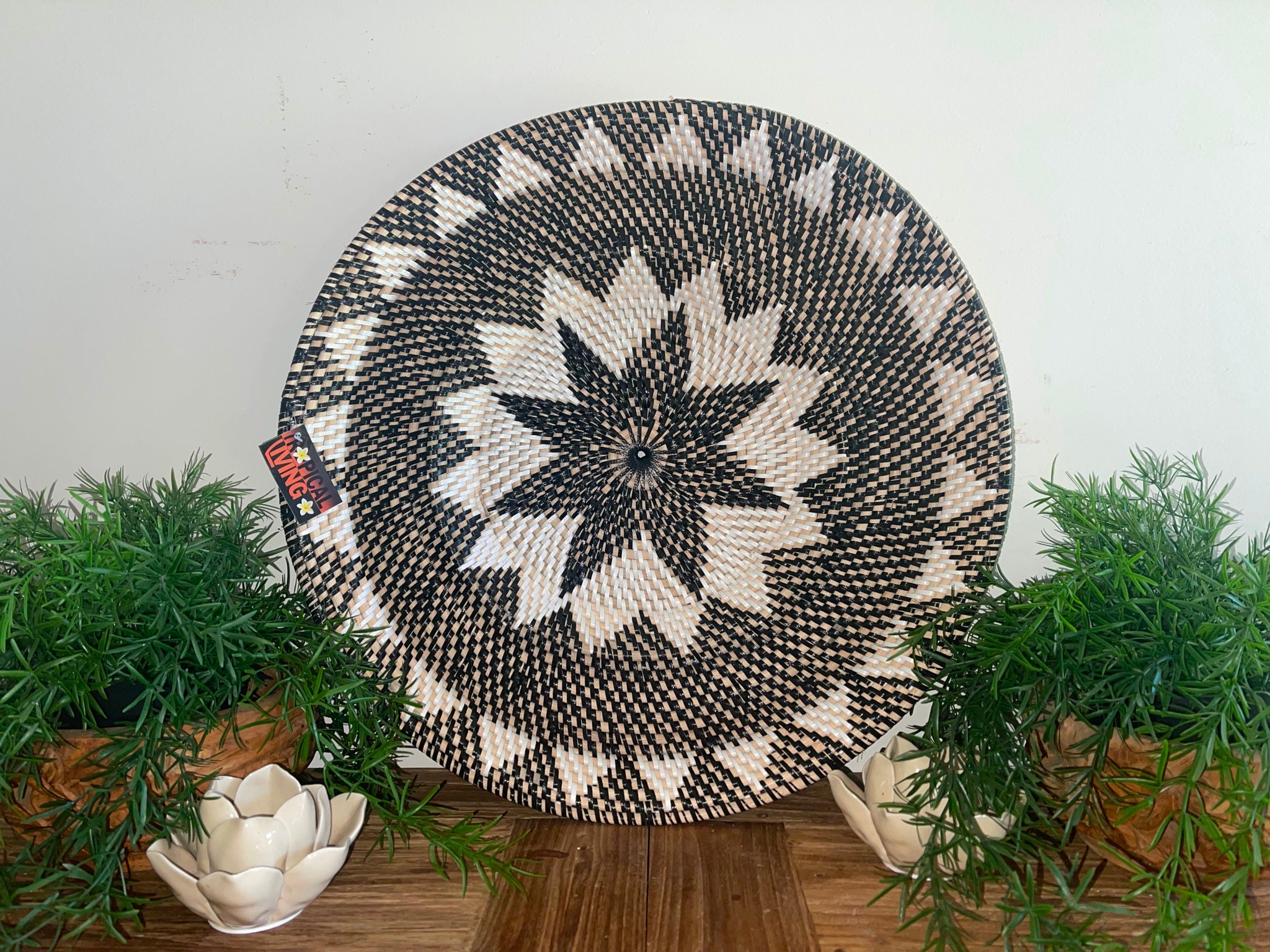 This beautifully hand crafted rattan platter can be used for entertaining or it can also be used as home decor wall art as you can see in the photos.