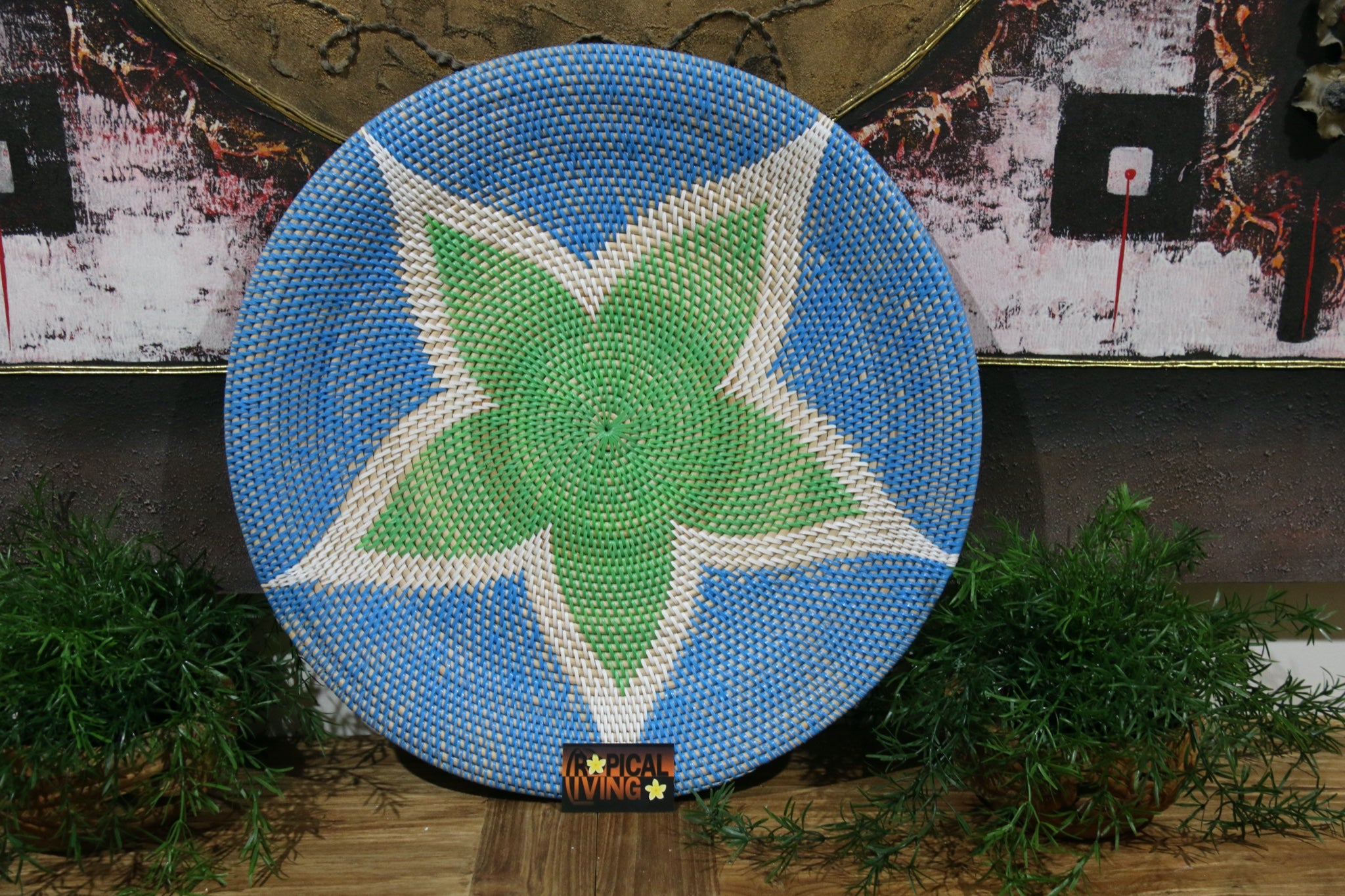 NEW Bali Woven Rattan Platter with Motif - Balinese Woven Rattan Wall Art 60cm