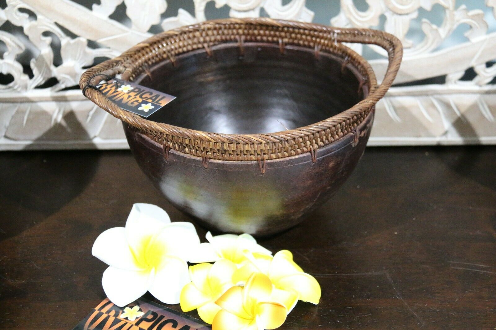 NEW Bali Wood / Rattan Trim Bowl - Balinese Wood/Rattan Combo Bowl BEAUTIFUL!!