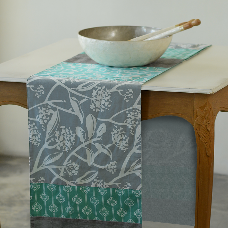 Made with exclusive Bali Zen cotton fabric in turquoise/grey colouring, this runner will dress up any table.