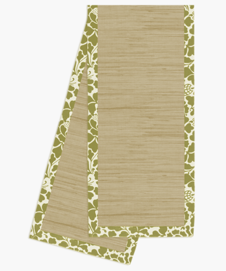 Made with hand-loomed water hyacinth and cotton with a border of Bali Zen's Green cotton, this runner will dress up any table.