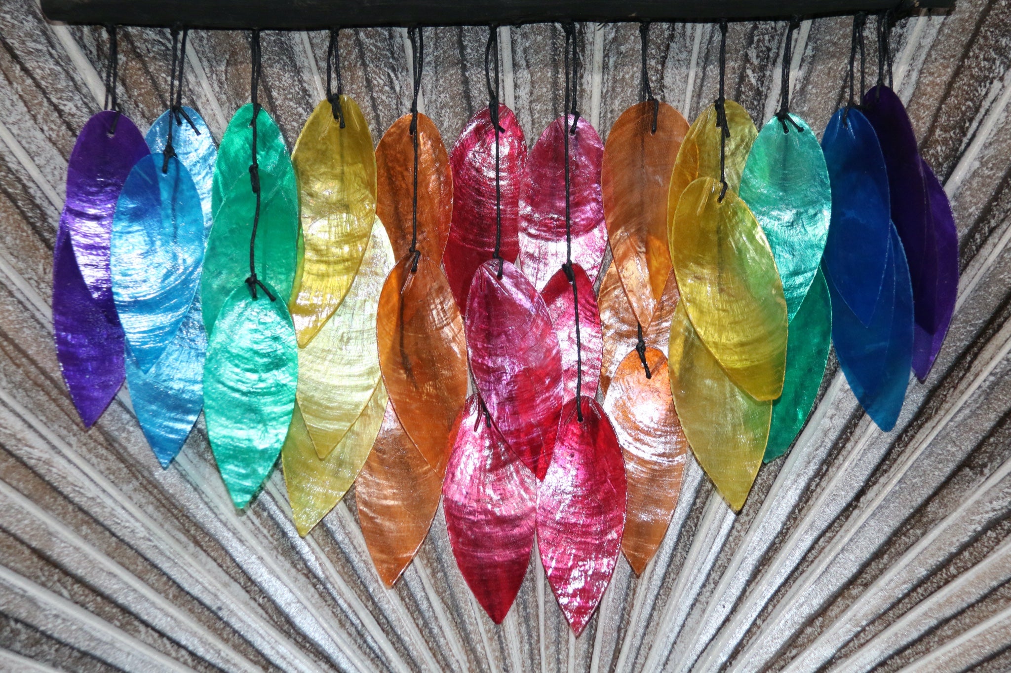 So pretty are these Capiz Shell Wind Chimes that are lovely and bright in colour... The leaf shaped capiz shells make a beautiful tinkling sound in the breeze...