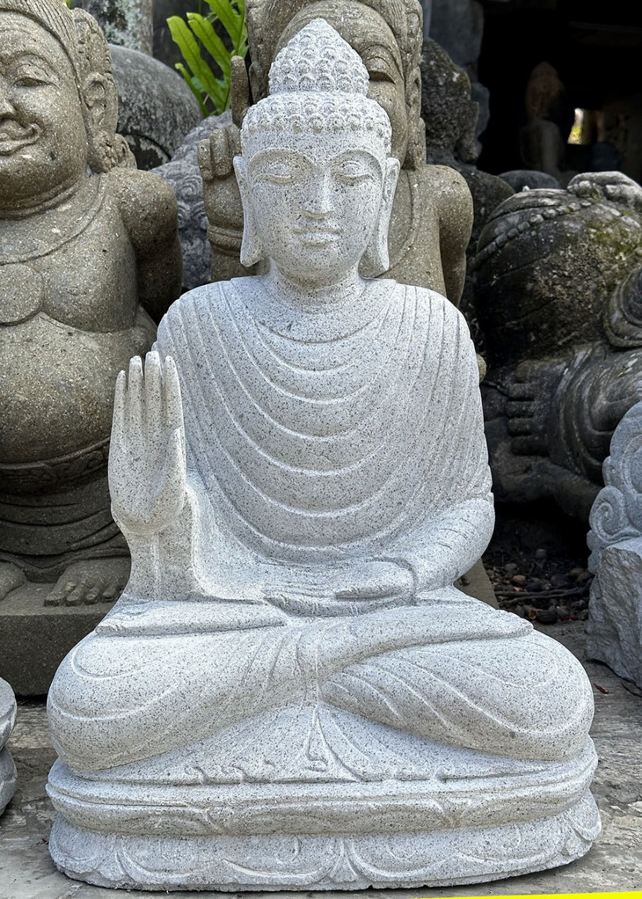 This Mudra or hand positioning of this statue can be called a pure symbol of protecting oneself and experiencing fearlessness, it can also be considered as a protection, peace and dispelling of fear. It is also known as form of spreading peace, love, friendship, and fearlessness.