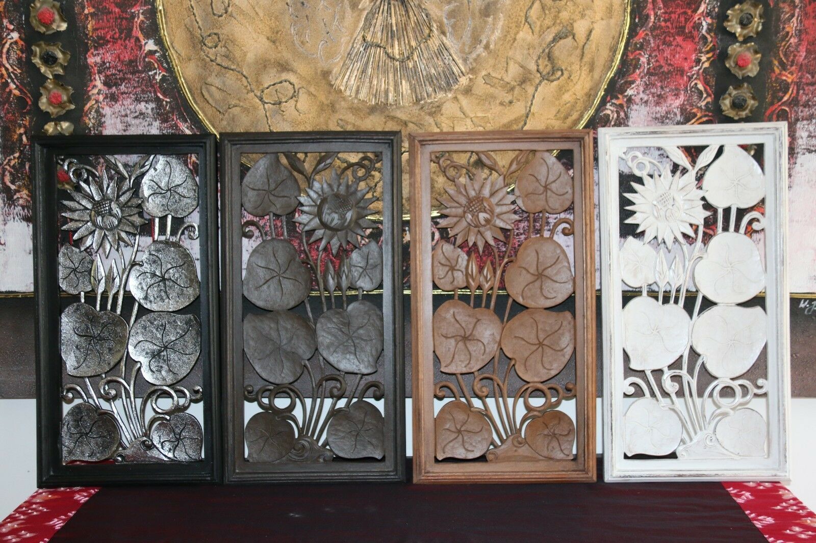 If you love the tropics you will just love the charm these lovely ornate carved MDF/Wood panels will add to your home.... Chosse from the colours available in the drop down menu above. Approximate measurement is 62cm high x 32cm wide Carved from MDF and framed with wood these panels...
