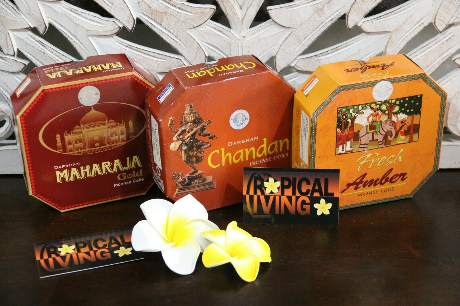 Give your home in the heavenly scent of these premium quality DARSHAN incense coils. Coils come in a box of 10 and have an approximate burning time of 24 hours per coil. Immerse yourself in wonderful memories of your exotic Asian travel at the same time adding authentic Balinese charm...