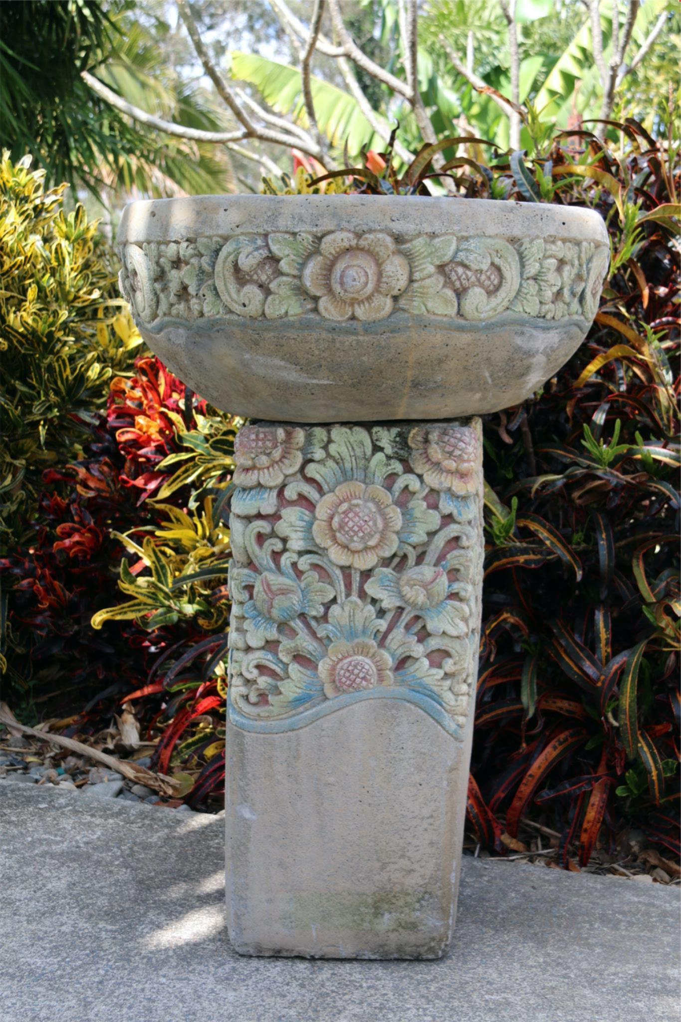 This beautifully hand crafted & carved bird bath with flower design will look fabulous in your garden and your local birds will be very thankful!!