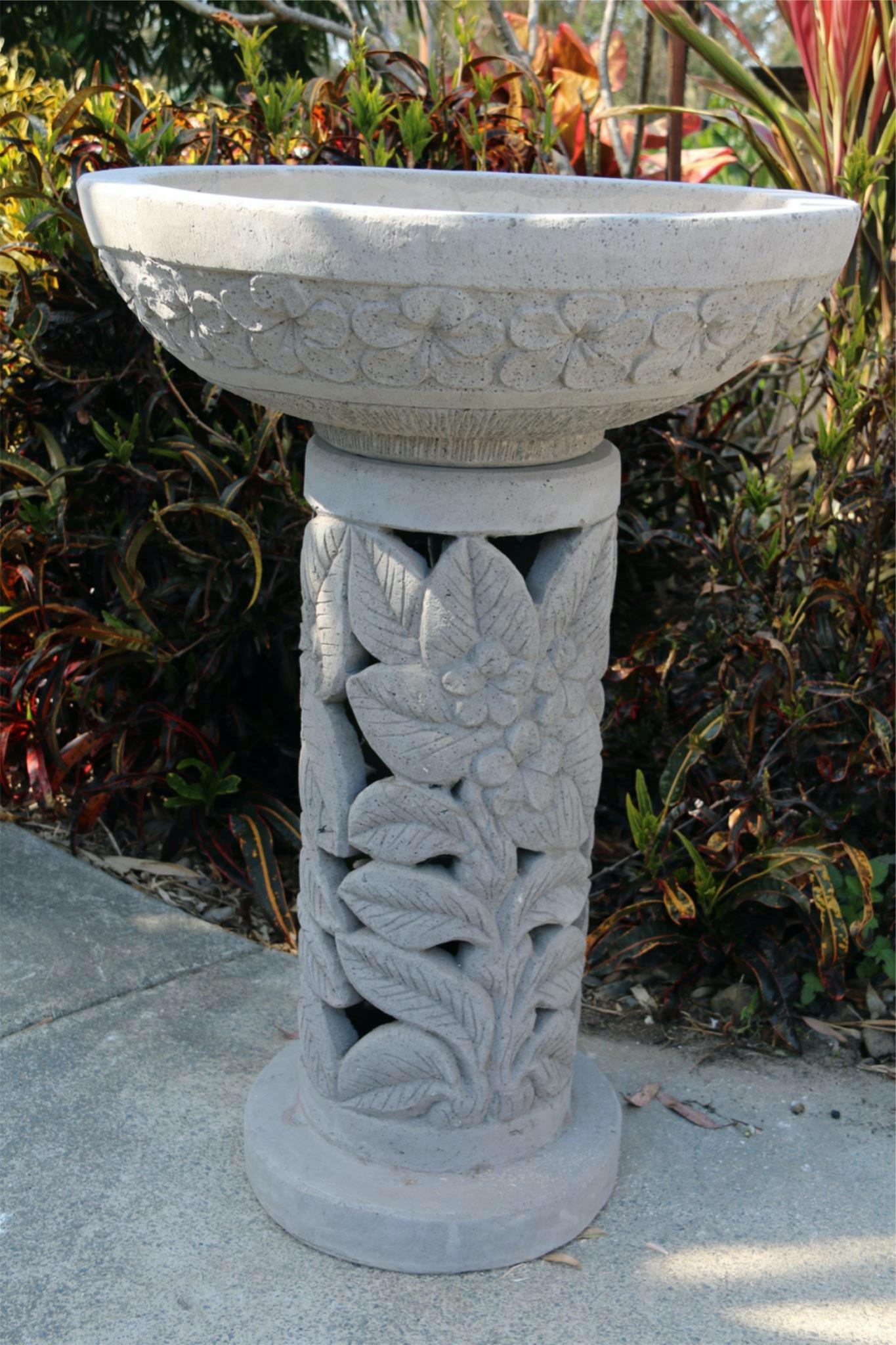 This beautifully hand crafted bird bath with frangipani & leaf design will look fabulous in your garden and your local birds will be very thankful!!