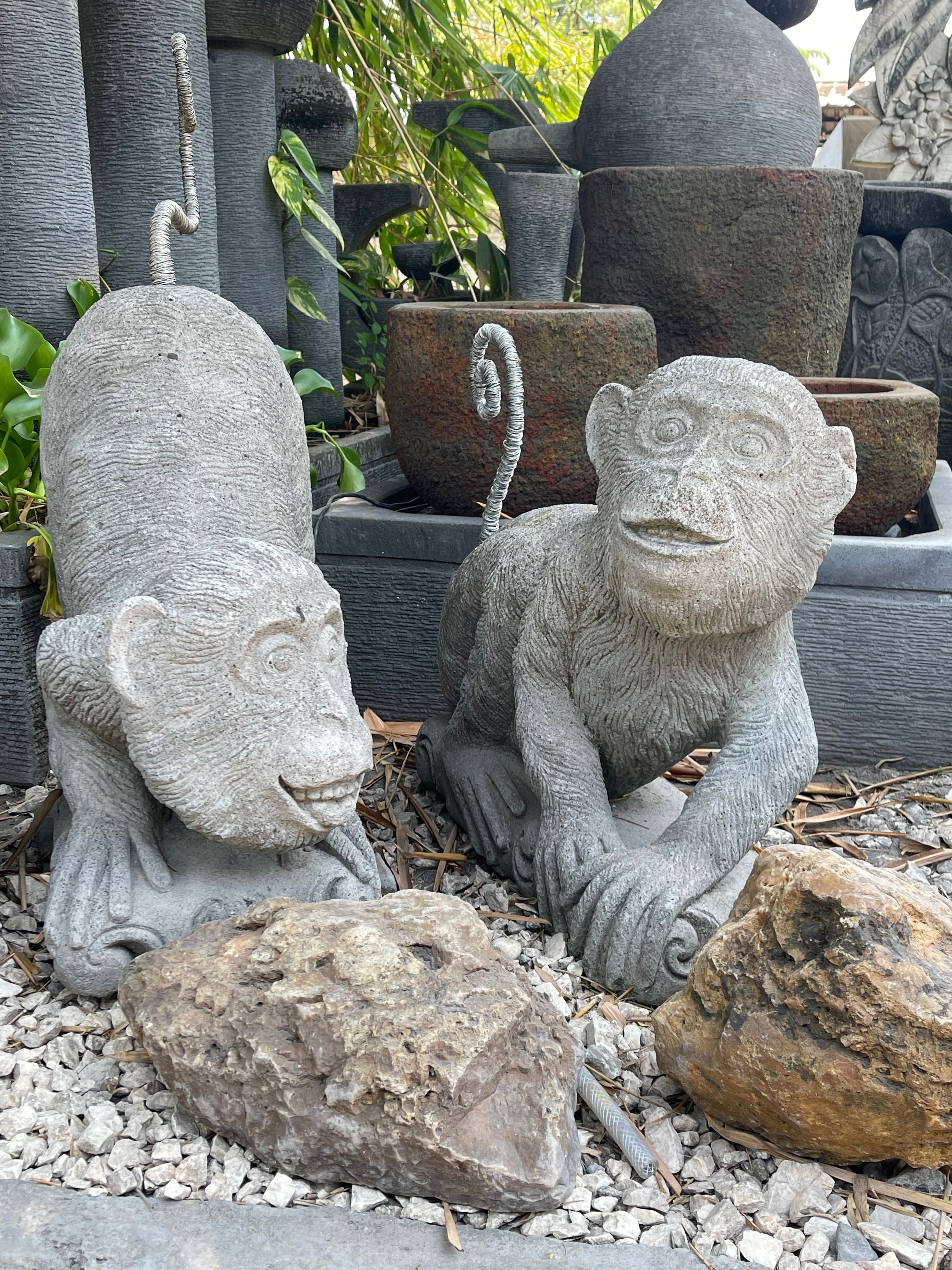 Beautifully hand carved from concrete with metal tails, these cheeky monkeys will look fabulous in your tropical garden.