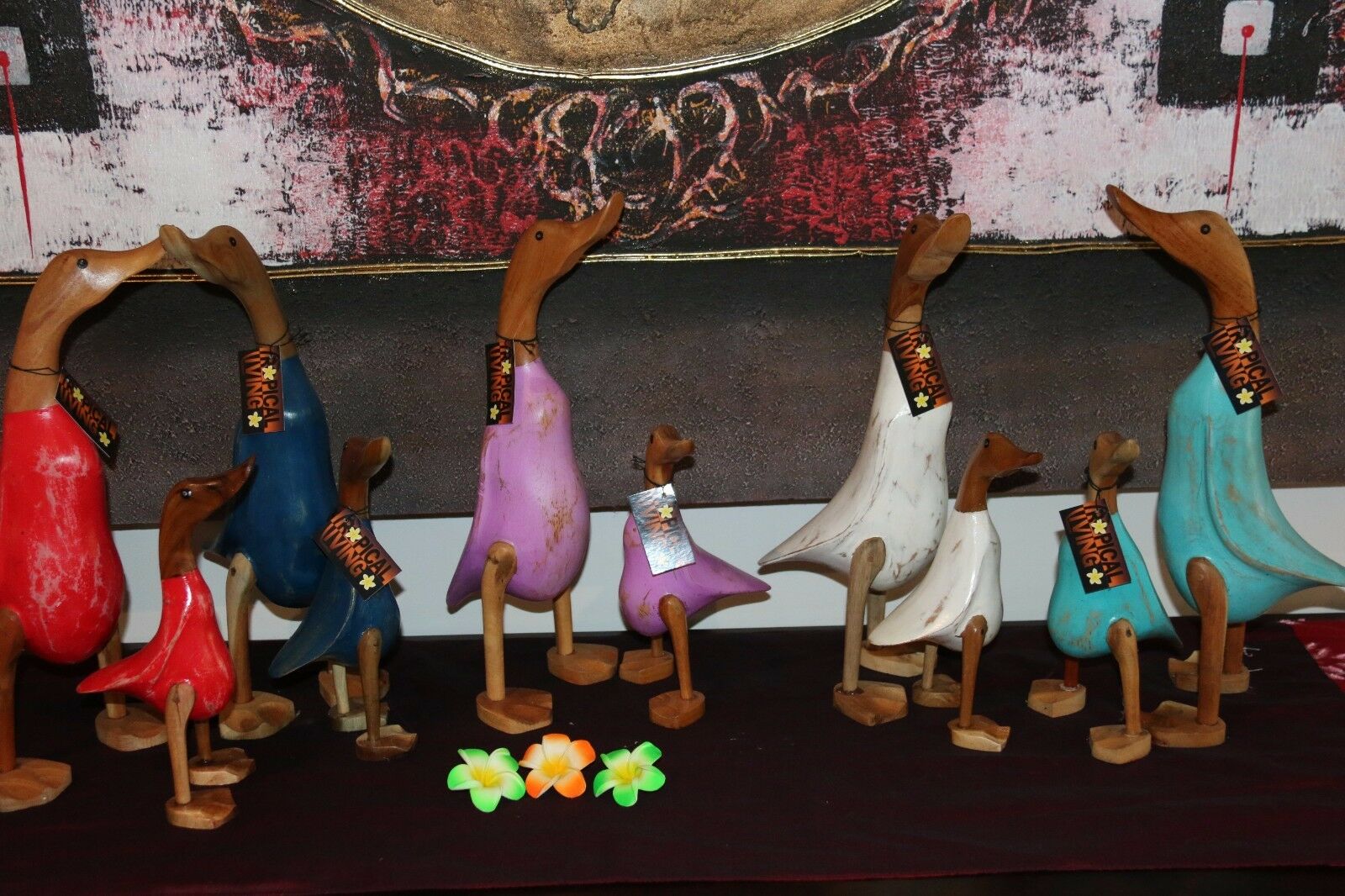 NEW Balinese Hand Carved & Crafted Wooden Rice Paddy Duck - 5 Colours SM or LG