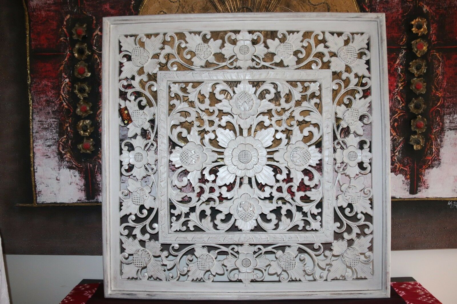Add some authentic Balinese Charm to your walls with these large beautifully hand carved wood panels They look great on standard white / off white walls or even better on a feature wall!! Measurements are approx: 100cm x 100cmcm White washed for a shabby chic appearanceWe have many other decorative...