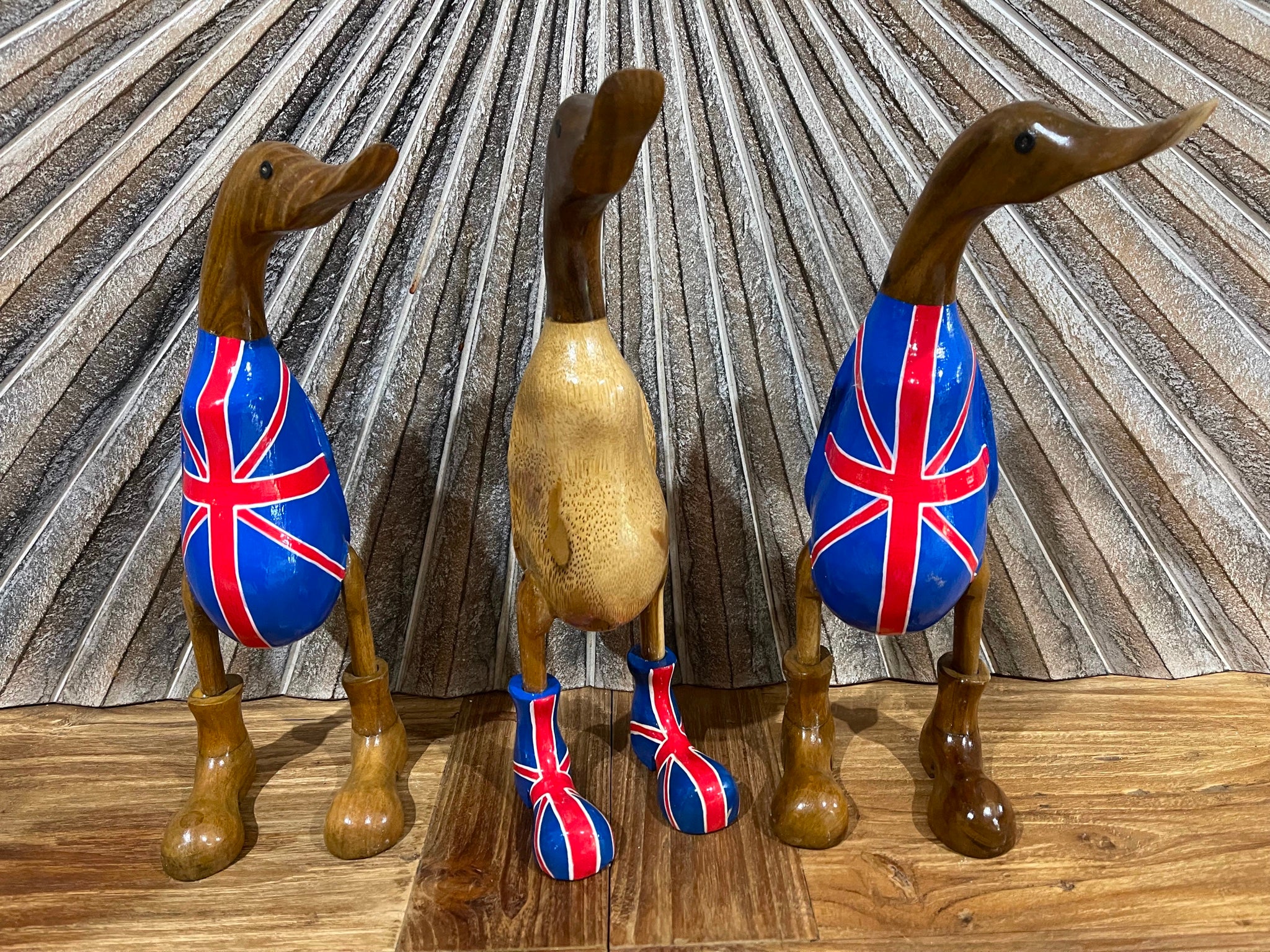 Hand Crafted Balinese Rice Paddy English Duck with Union Jack!! Cutest thing ever!!