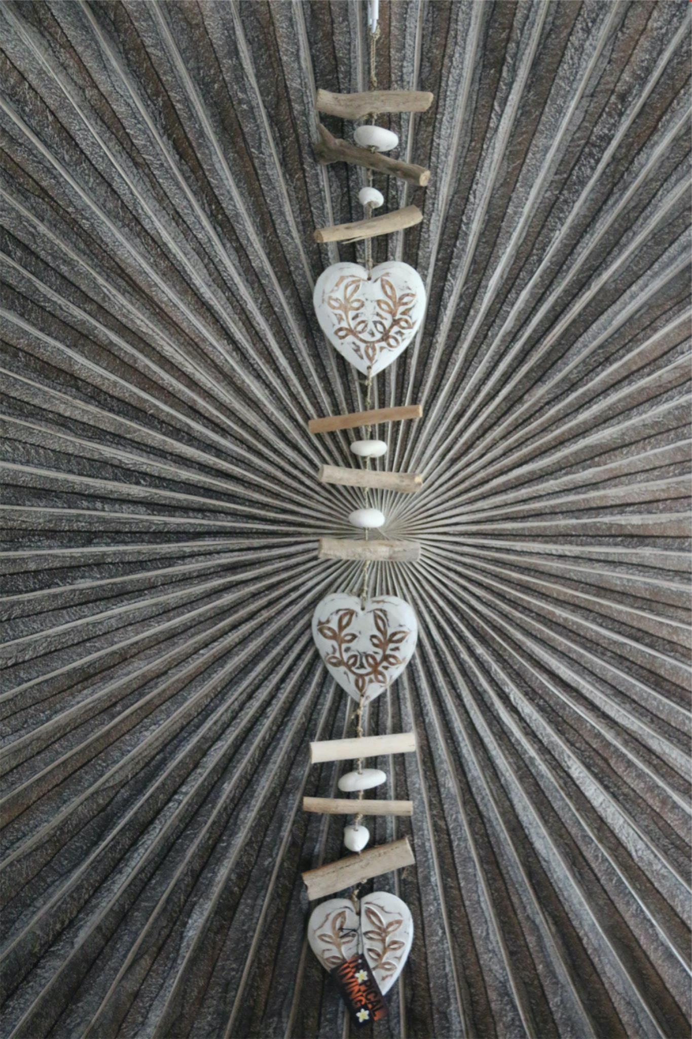 Measurements are approximately 10cm wide x100cm long from the very top where it hangs to the bottom of the wooden heart.