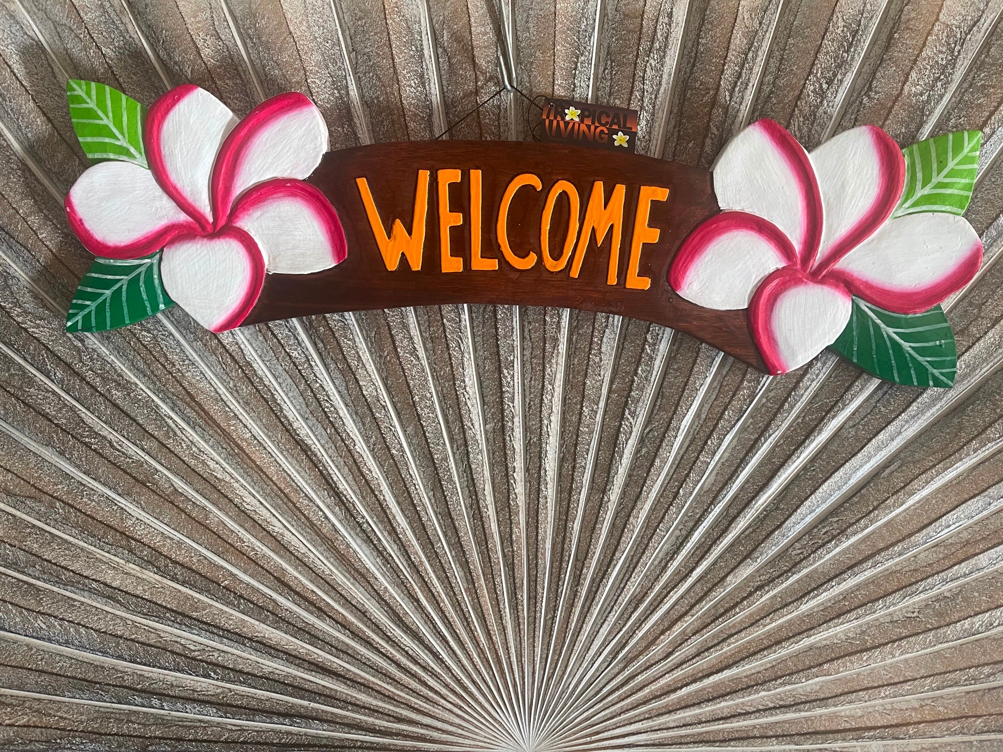 This hand crafted & carved FRANGIPANI ALOHA sign will add fun and charm to your Tiki Bar or Tropical entertaining area's