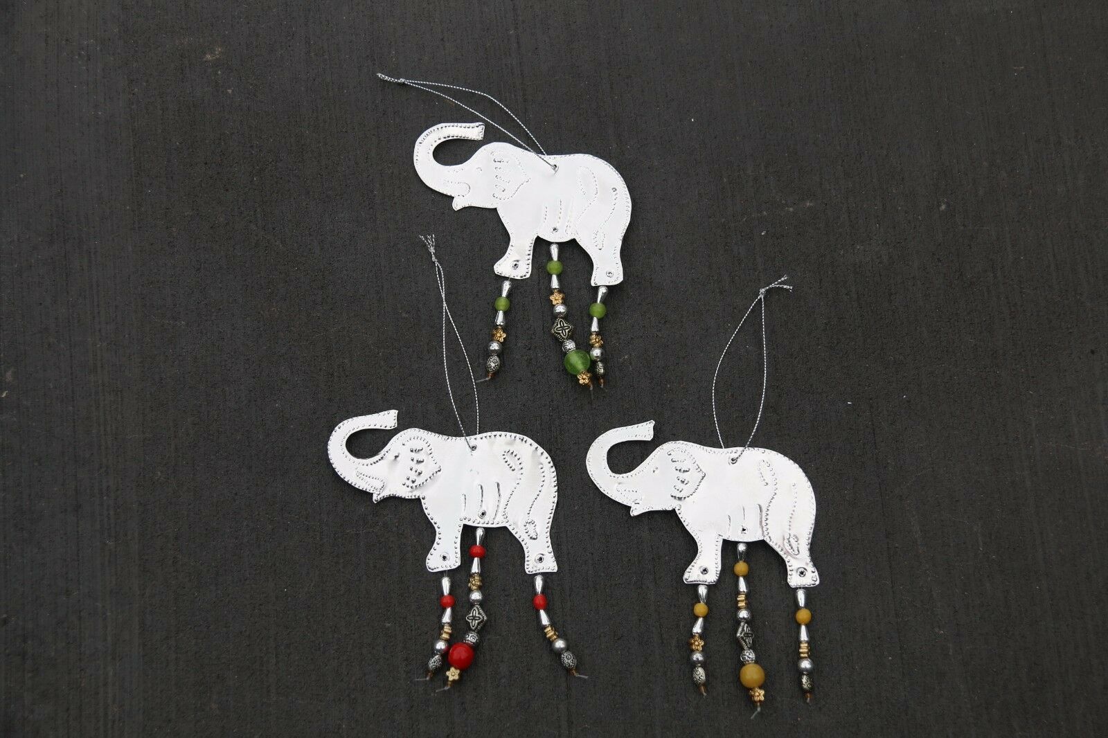 These cute elephant hangings are cleverly handcrafted from pressed aluminium with bead trim