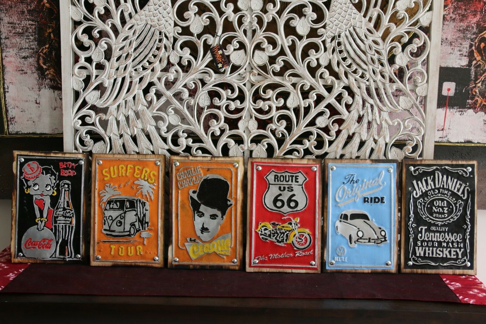 NEW Balinese Hand Crafted Nostalgic Signs - Pressed Metal/Wood Signs FREE POST