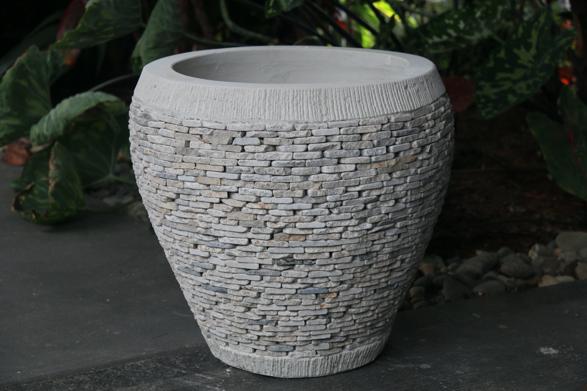 We have a range of these pots in all shapes sizes and colours (grey, mixed & white) under separate listings. These pots look FANTASTIC set up throughout the home and garden as a story. We even have water features that work with this story finished in marble chip!! Great feature placed in a cluster with your favourite plants.