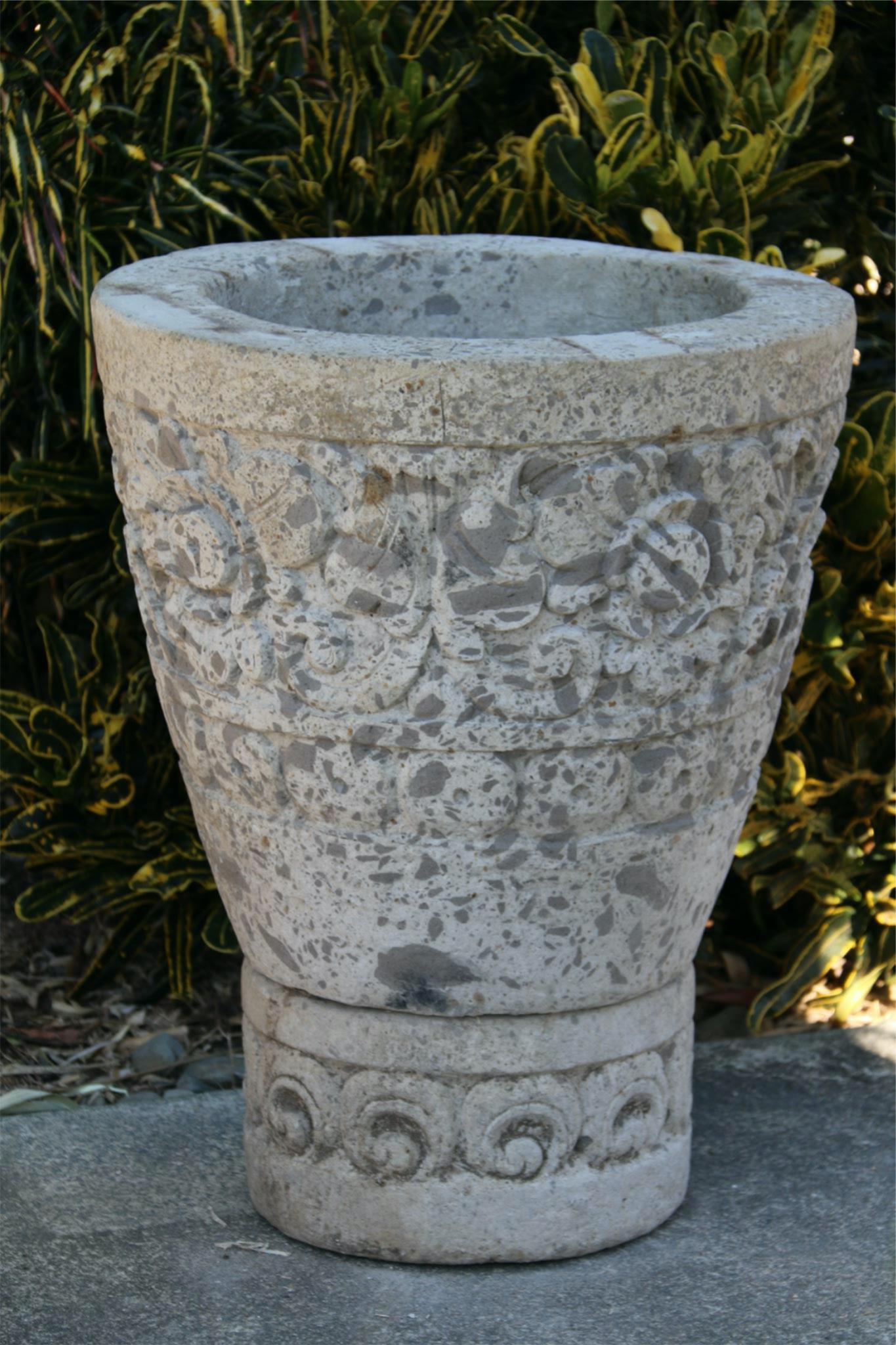 Paras pots are a constitution of concreted and crushed rocks and pumice, they are then hand carved to make a fantastic feature piece.