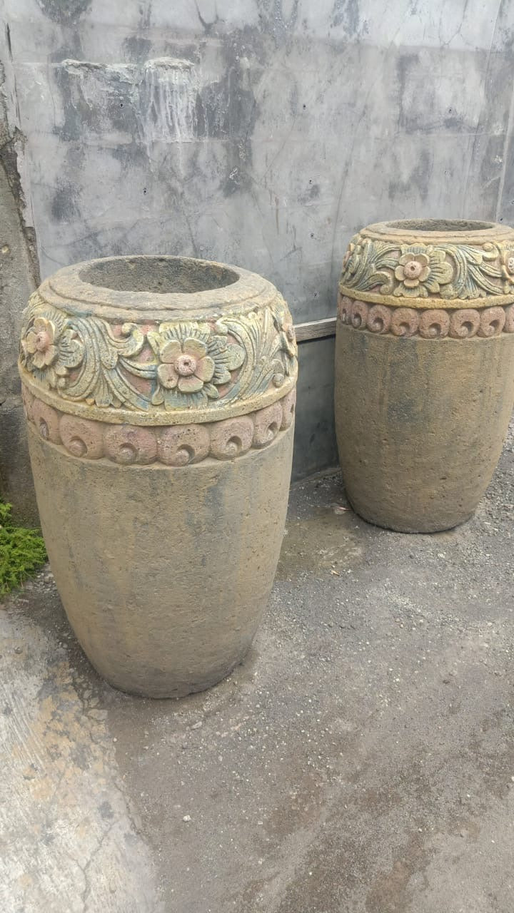 Paras pots are a constitution of concreted and crushed rocks and pumice, they are then hand carved to make a fantastic feature piece.