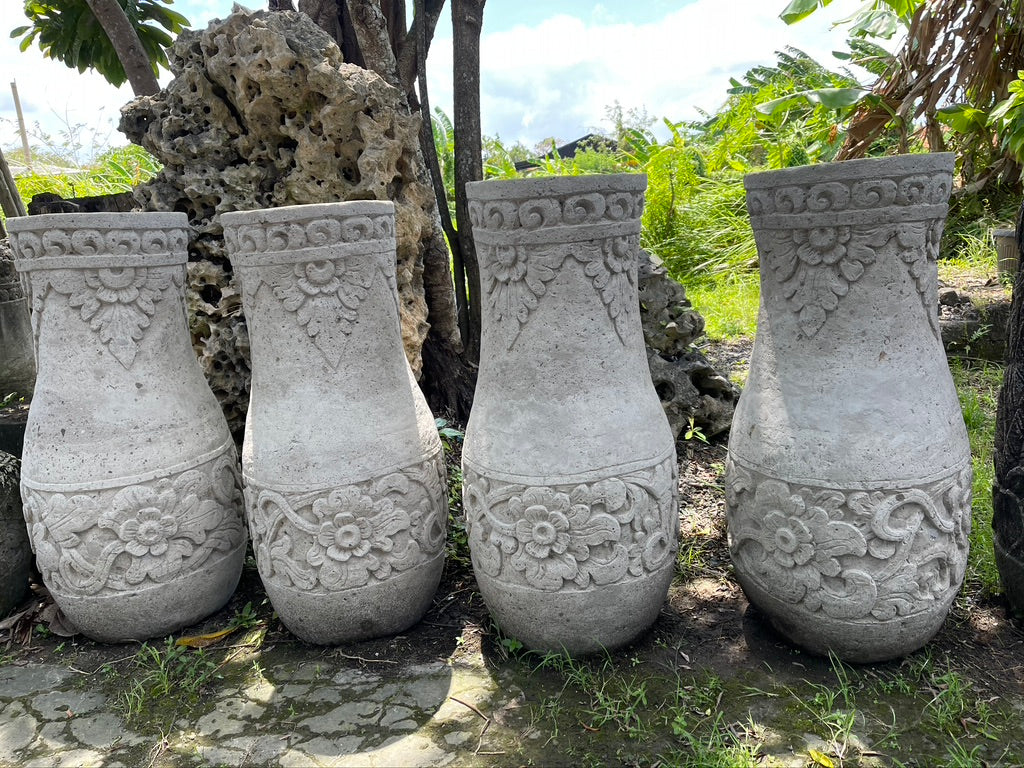 Paras pots are a constitution of concreted and crushed rocks and pumice, they are then hand carved to make a fantastic feature piece.