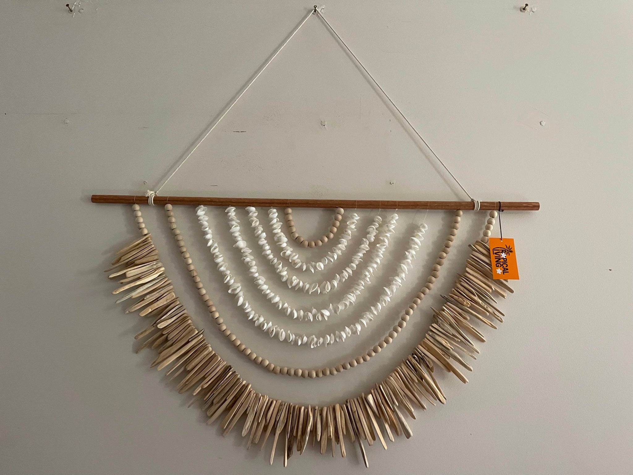 Beautifully handcrafted from Shells, wooden beads and wood pieces this Balinese Wall Art will add a sense of Coastal BOHO to your space!!