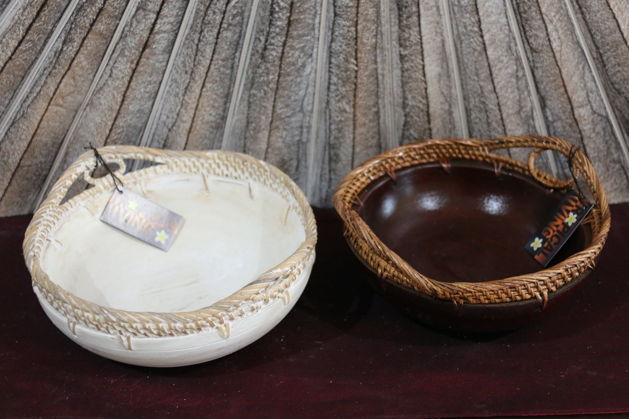 These beautifully hand crafted and woven combination wood/rattan bowls will set the Tropical Scene to your home and entertaining.