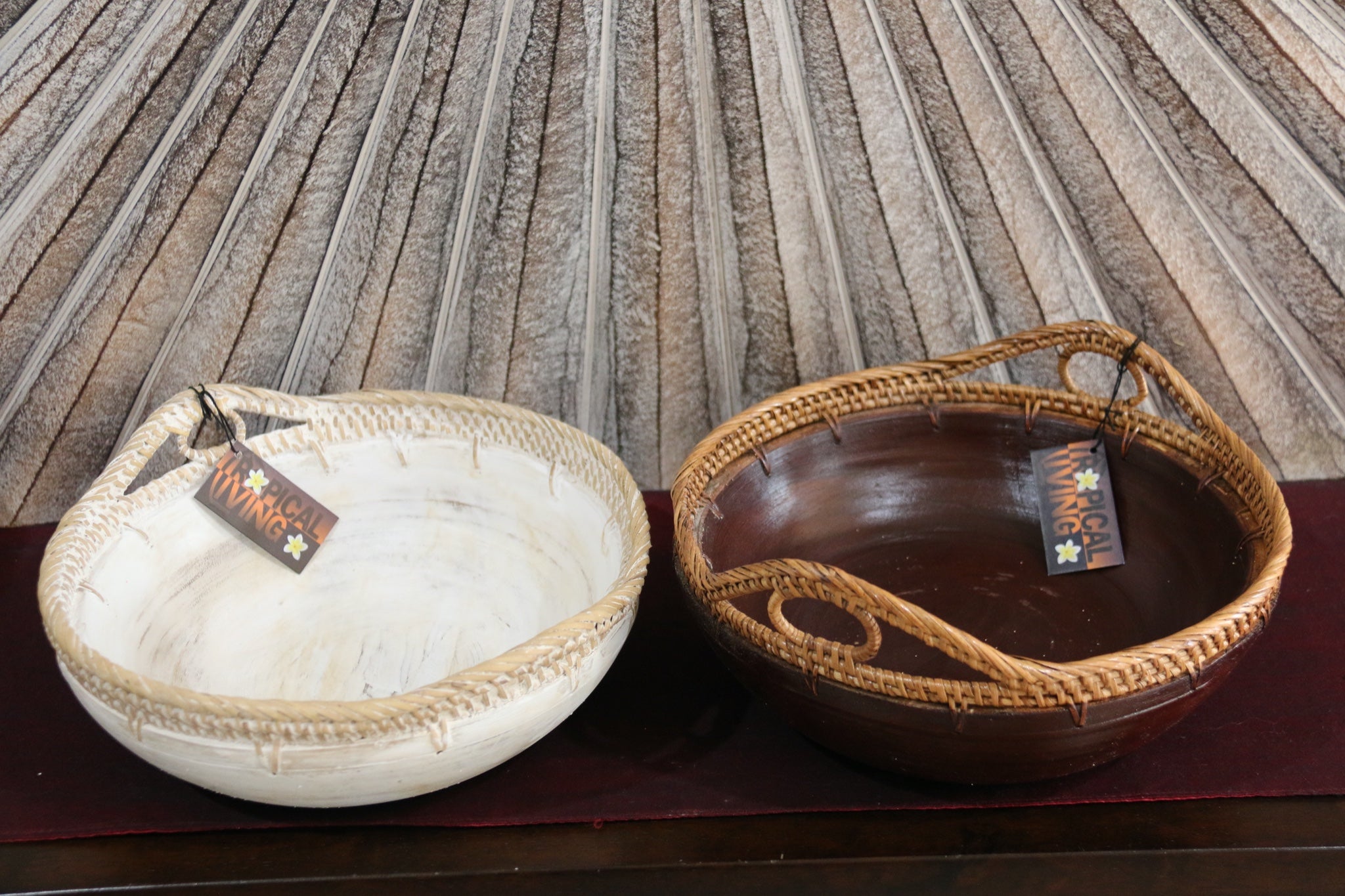 These beautifully hand crafted and woven combination wood/rattan bowls will set the Tropical Scene to your home and entertaining.