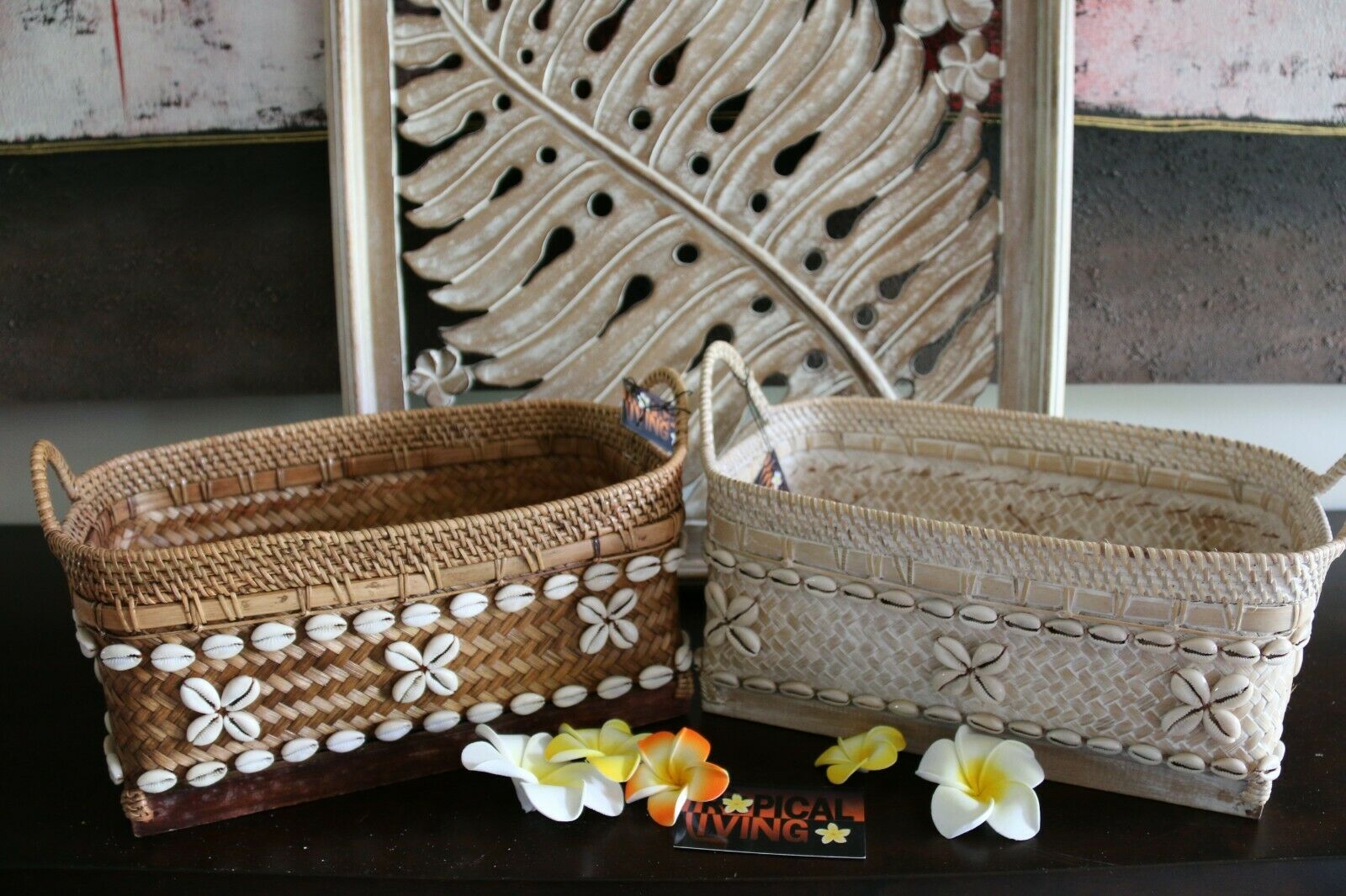 NEW Balinese Hand Crafted Woven Open Basket w/Rattan Trim - 2 Colours Avail
