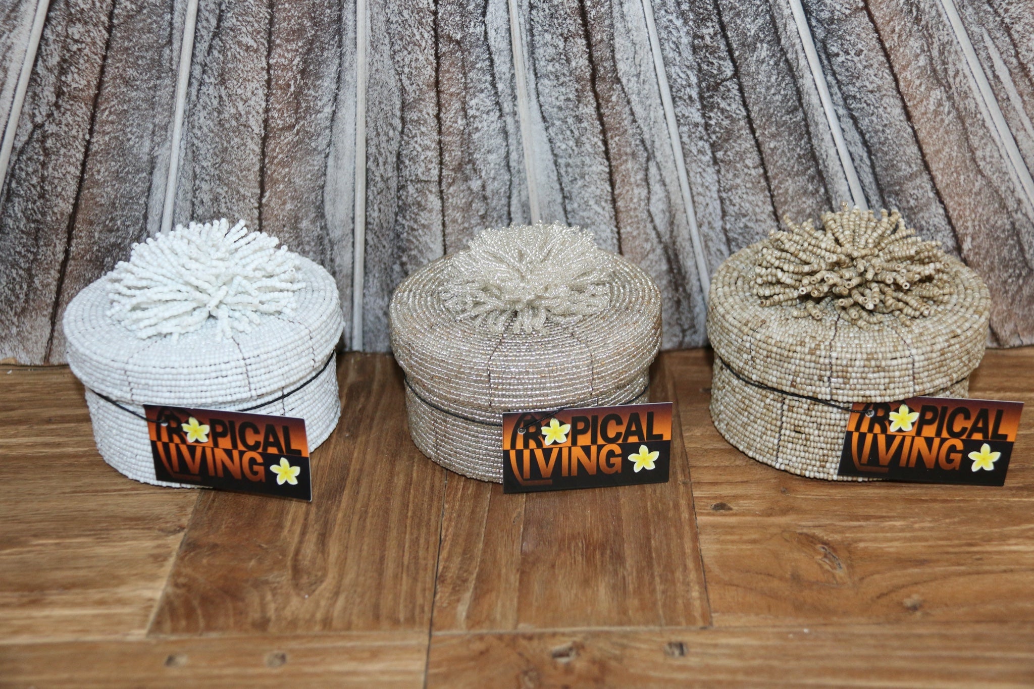 These beautifully hand crafted baskets with lid will blow your mind when you see the amount of work involved with each bead being hand threaded...